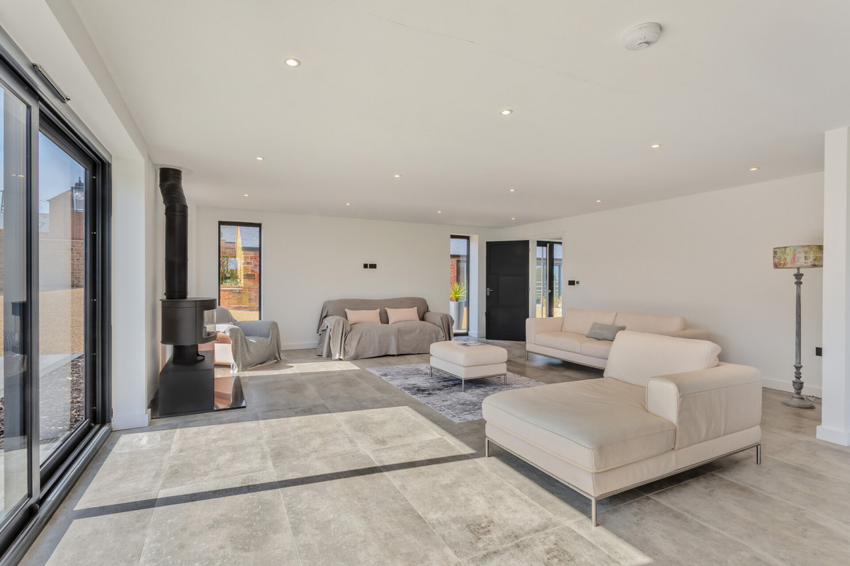 - Open Plan Reception Room And Dining Room With Log Burner