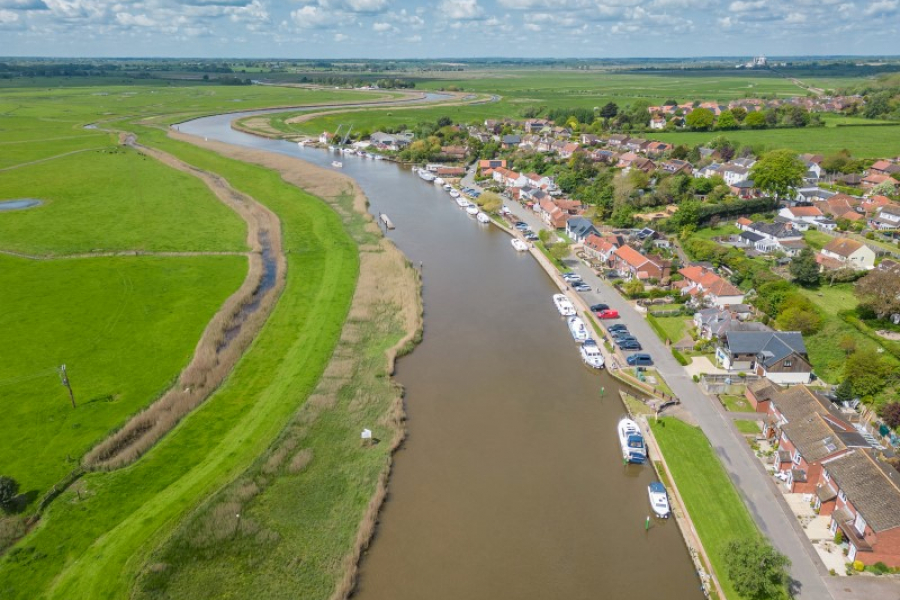 Reedham is a village in several parts, laid out along the Northern bank of the River Yare. Either end of the village provides a river crossing of one sort or another - to the west is the only vehicle chain ferry on the Norfolk Broads and to the east is the swing bridge taking the railway over the river. In between, you will find a pretty quay lined with moored boats, cottages and a couple of riverside pubs. This quay was once the hub of the local boatbuilding industry with several wherries built here. A statue on the quay, commemorates this important time in Norfolk Broads history.