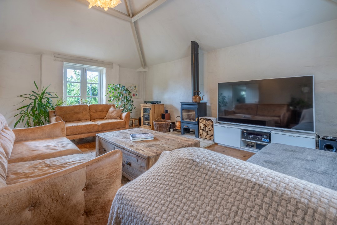 - Sitting Room with Vaulted Ceiling and Wood Burning Stove