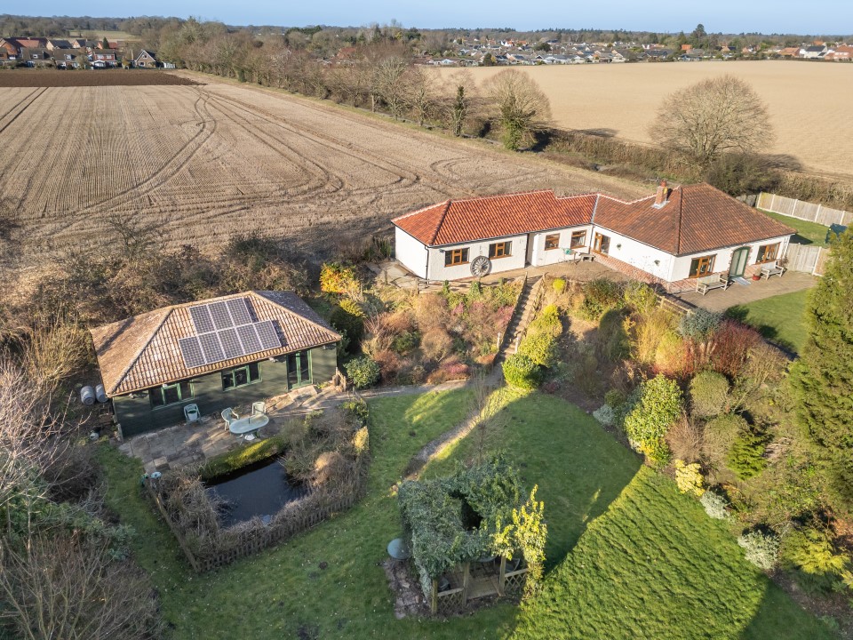In a generous plot surrounded by open farmland, this much-loved family home benefits from a truly wonderful setting. You’ll feel right at home with the wildlife, can raise your children in the clean country air, grow your own produce, keep chickens and more. With flexible accommodation and a large, detached snooker room, there’s plenty of space for making memories – and it’s all within easy reach of Norwich, the Broads and the coast.