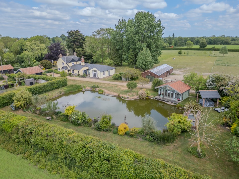 Combining period character and contemporary open plan living, this once small cottage is now a fabulous family home. Sitting in 6.5 acres with paddocks, stables and further outbuildings, it’s an equestrian dream. You’re in the middle of open countryside here, but just a short drive from Wymondham, Attleborough, the A11 and the A47, so it’s an excellent location all round.