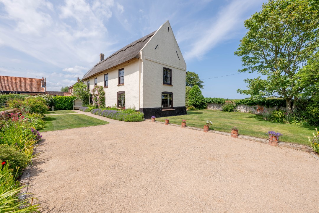 This picture-perfect Grade II listed thatched property with roses round the door and lavender along the path, sits in a superb position, walking distance from a golden sandy beach and set within a vibrant village, close to the Broads. It has a fascinating history and comes complete with a large barn offering interesting potential, a sunny, south-facing walled garden and so much more besides. Please note there are two floorplans loaded, one for the house and one for the barn.