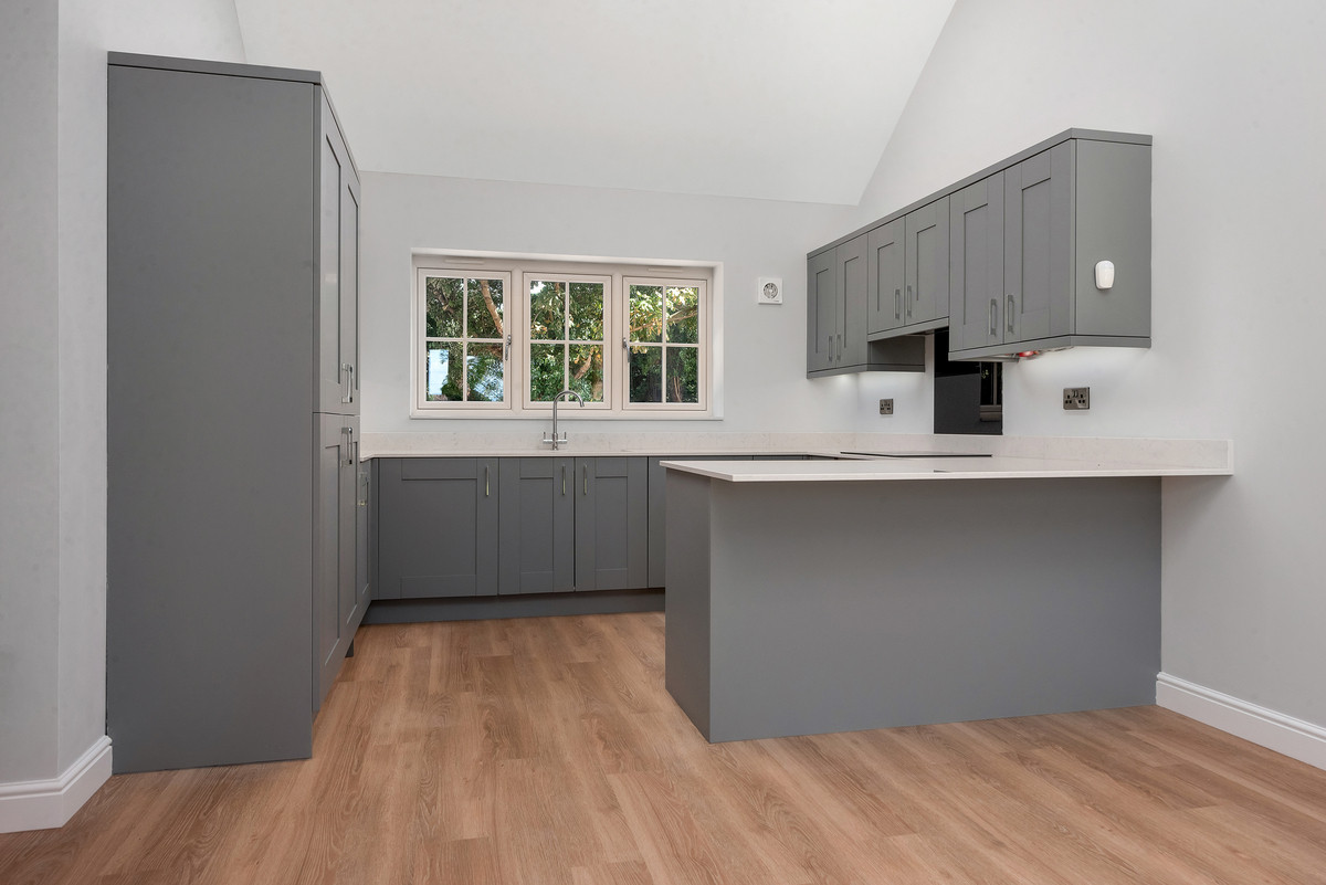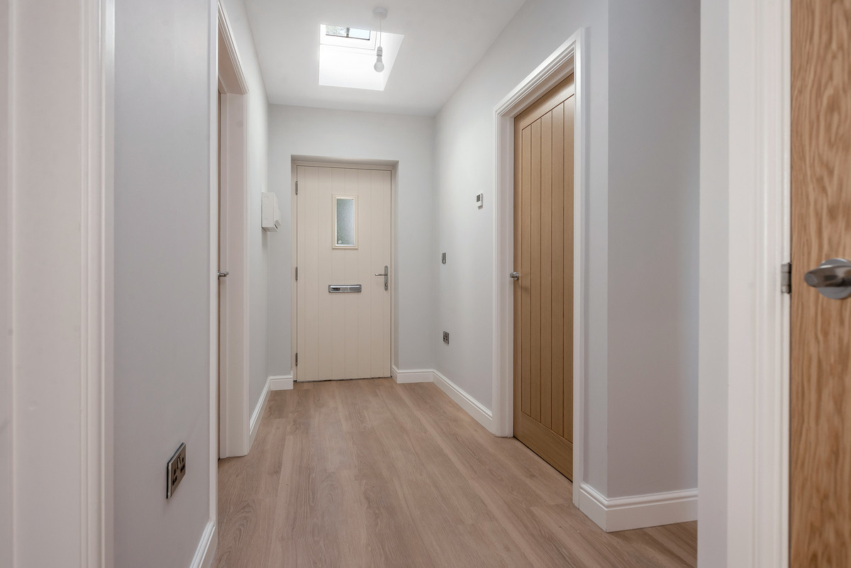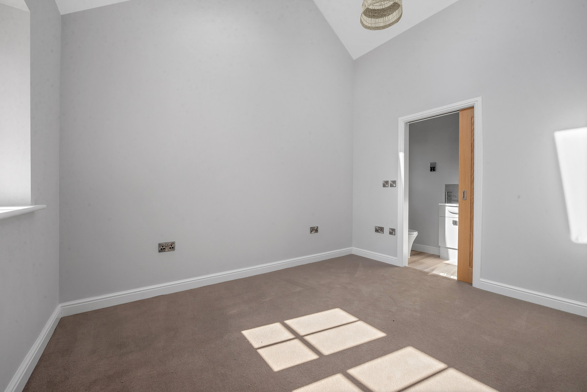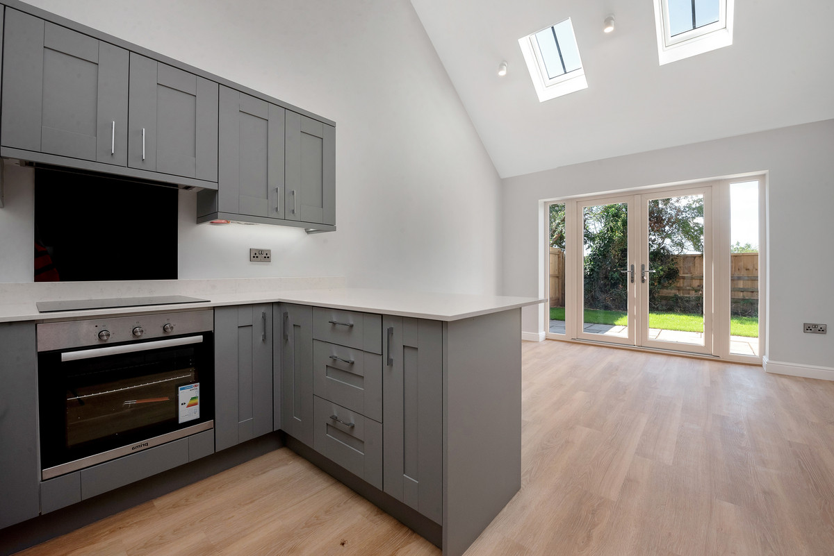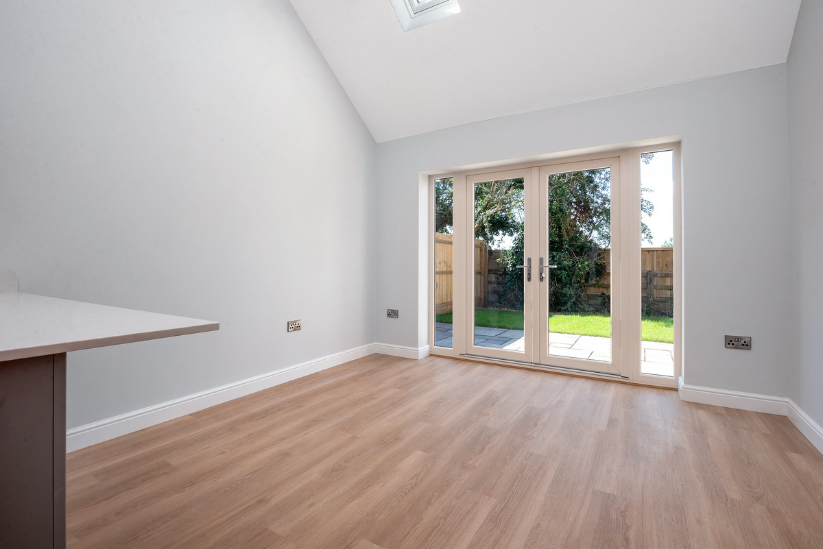 As you enter this new home you instantly appreciate the quality of accommodation on offer. Without doubt the heart to the home is the stunning vaulted living kitchen with well defined kitchen, dining and sitting areas. This stunning area is filled with natural light with feature skylights and French doors providing instant access and enjoyment of the gardens. The kitchen showcases high quality wall and base mounted units beneath quartz worksurfaces, with a range of integrated appliances. There is a good sized sitting room and separate study (which could provide a third bedroom). The property features a main bedroom with en suite shower room as well as a further bedroom which benefits from the use of the high quality family bathroom.