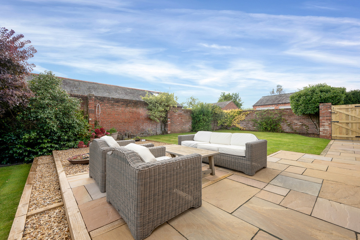 Outside the property features delightful walled gardens to the rear which are South facing and feature shaped lawns, a variety of specimen shrubs and generous terrace and seating areas making this property ideal for outdoor entertaining. To the front is a large level lawn and to the side of the property is a private parking area with a driveway leading to a detached double garage.