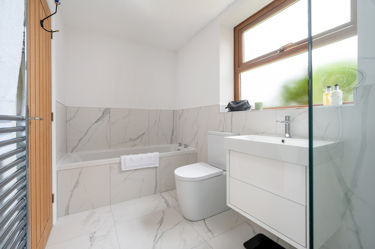 To the ground floor a spacious entrance hallway provides access to a stunning large sitting room with vaulted ceiling and feature Inglenook fireplace housing a log burner. There is also a further reception rooms, providing the perfect space for a formal dining room or home office. Withouht doubt the heart to the home is the stunning living kitchen which has been recently completed to the highest of standards – it showcases bespoke contemporary shaker style units with integrated appliances, opening to a full height living area which has the benefit of bifold doors providing instant access to and enjoyment of the gardens. The bedroom accommodation is arranged on the ground and first floor with the master bedroom being located on the ground floor with adjacent high-quality bathroom which has been recently remodelled. To the first floor a split-level landing provides access to two further bedrooms and a further newly upgraded shower room.
