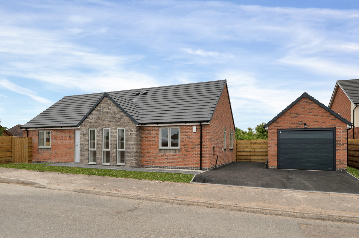 This brand-new detached bungalow comes to the market offering the fantastic opportunity to acquire a beautifully presented home extending to approximately 1222sq.ft across the bungalow and detached garage. With the ability to make your own mark prior to completion, through select vendors the successful purchaser will have the opportunity to work with the developer to choose their desired kitchen, bathrooms, flooring and general fitments – ideal to ensure this property immediately feels like home upon handover. The generously proportioned accommodation is practically arranged and all rooms lead off the spacious entrance hall which, in brief, comprise of: an open-plan living/ dining kitchen offering a bright and airy space with French doors leading out on to the patio, principal bedroom with en-suite shower room, two further double bedrooms and a family bathroom.