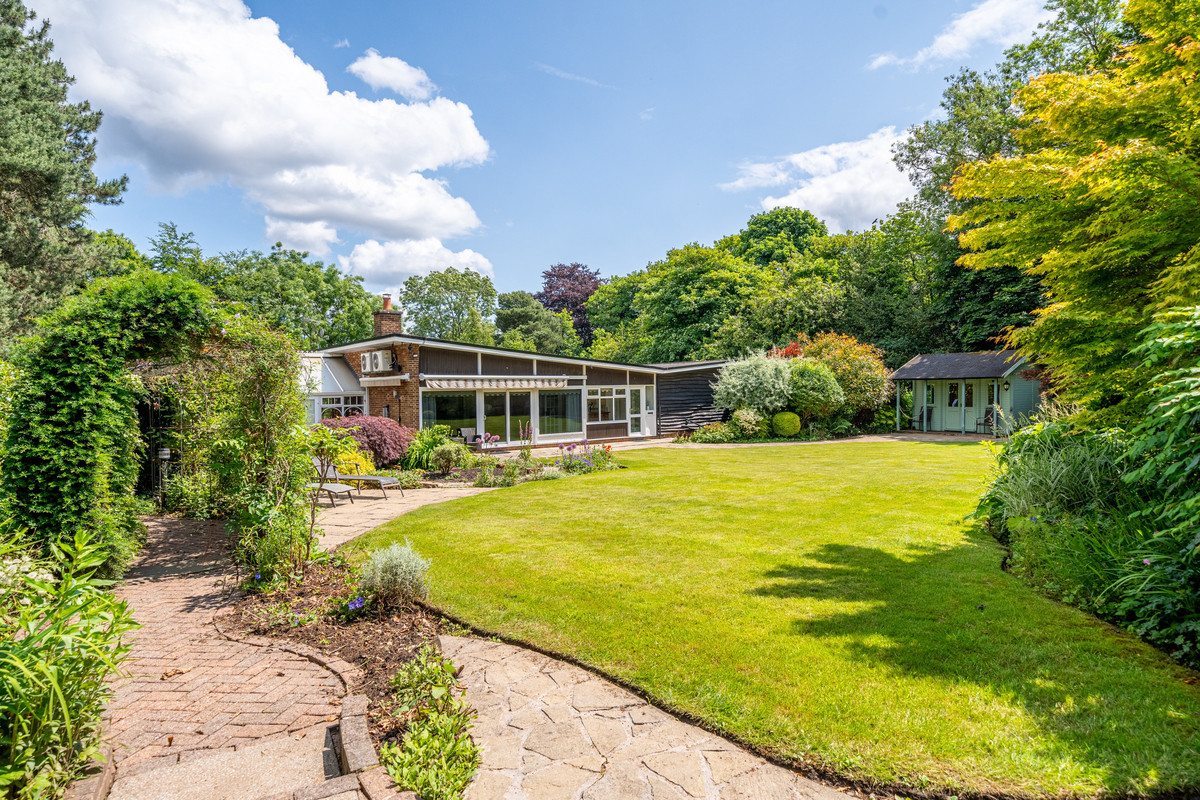 An individual, architect-designed bungalow built in 1957, offering approx. 2,000 sq. ft. of well-planned living space plus an additional 700 sq. ft. in outbuildings and garaging. Set within stunning 0.5-acre grounds, the property features a sitting room, dining room, garden room, kitchen, three double bedrooms, a bathroom, separate WC, and internal lift access. Situated in a highly desirable location.