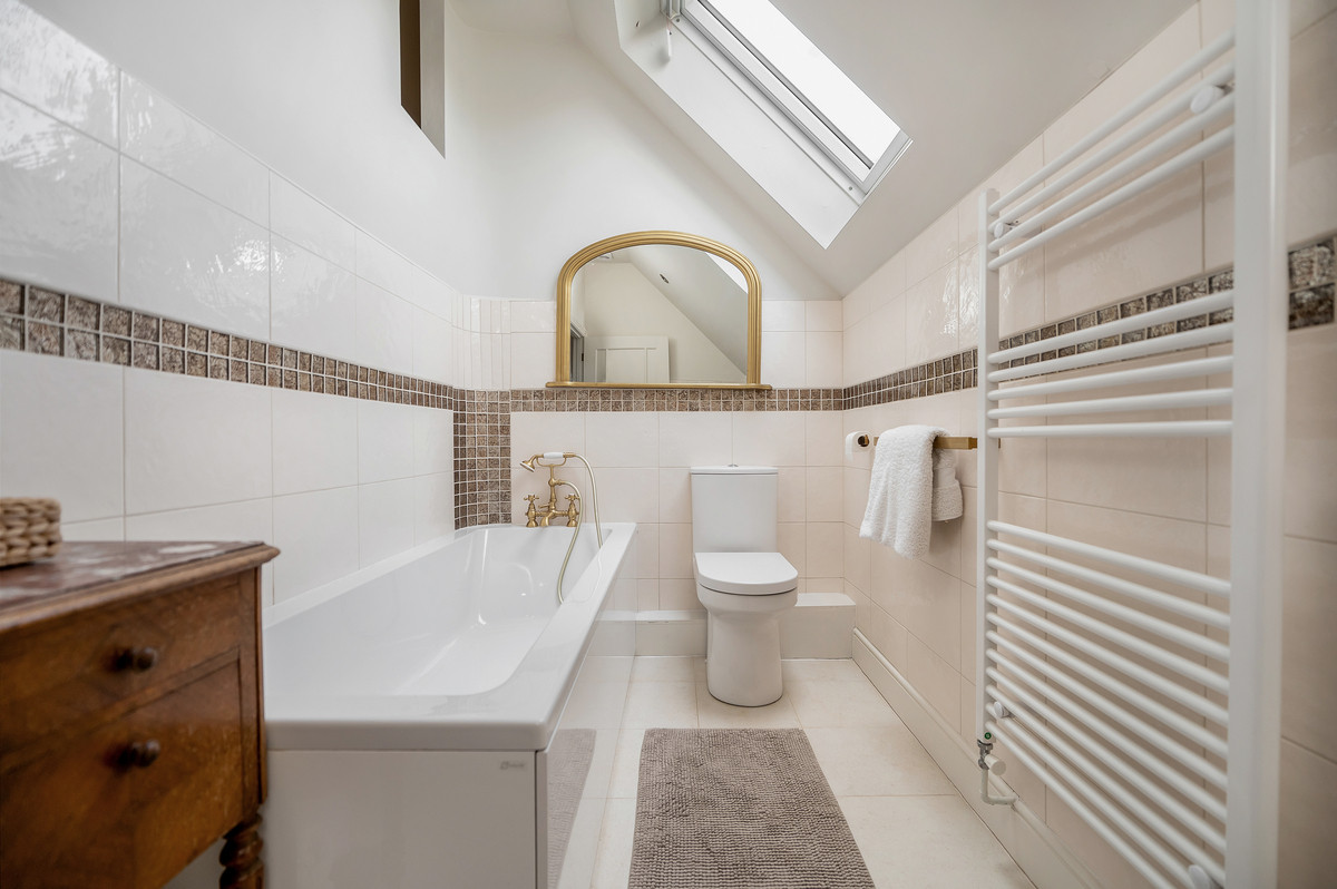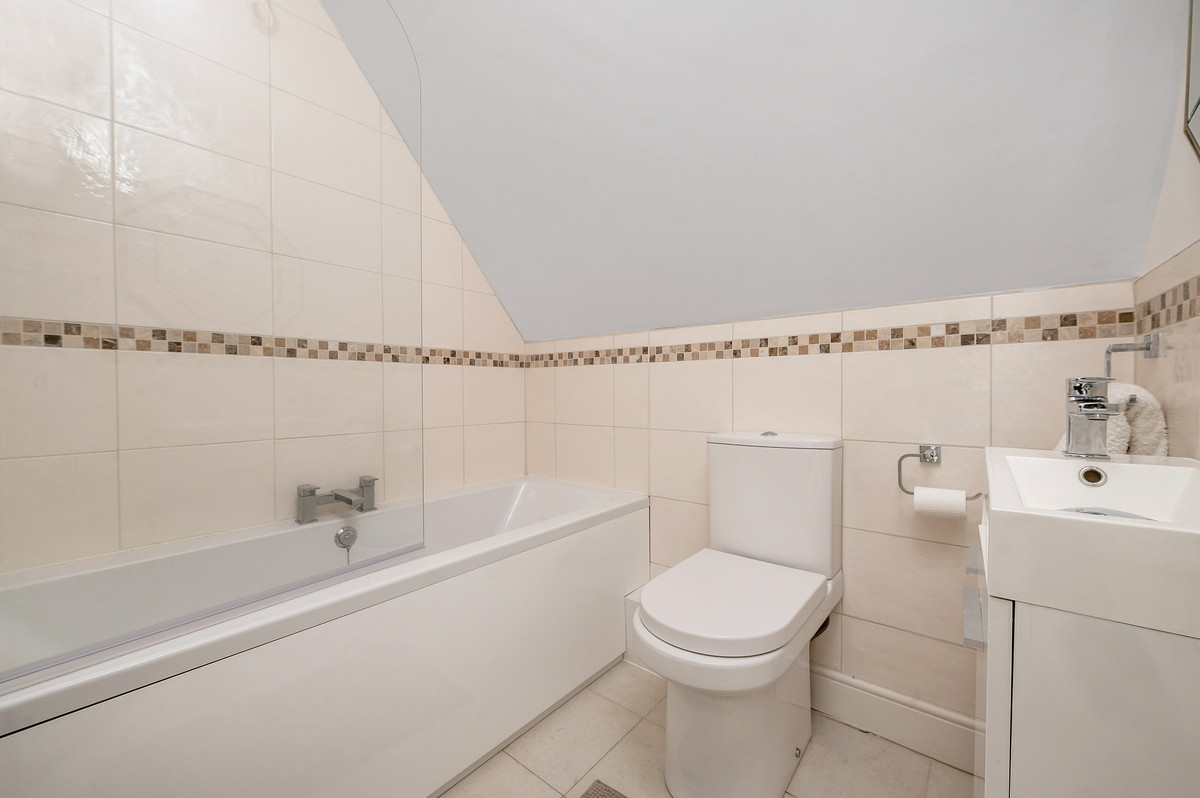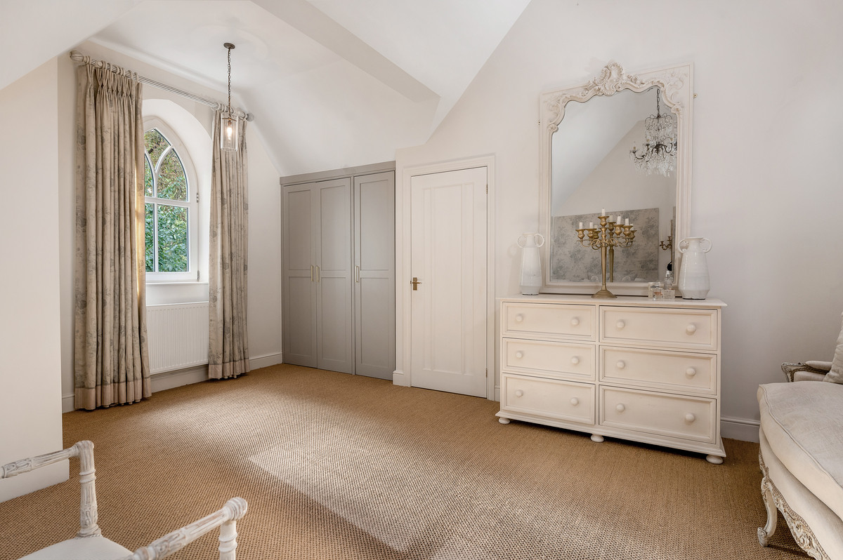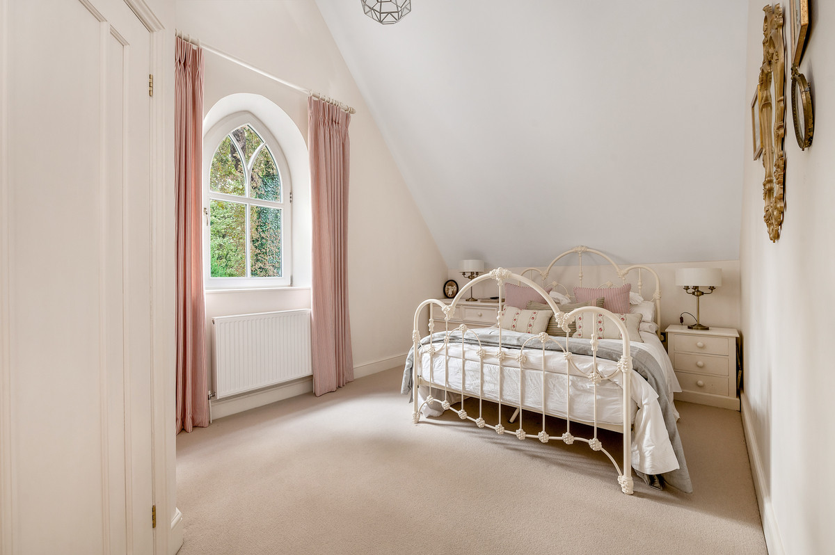 To the first floor are three lovely double bedrooms with vaulted ceilings. The main bedroom has the benefit of a dressing area and stylish en-suite bathroom. There are two further double bedrooms, both of which benefit from built in wardrobe and en-suite facilities. A central landing provides a useful airing cupboard.