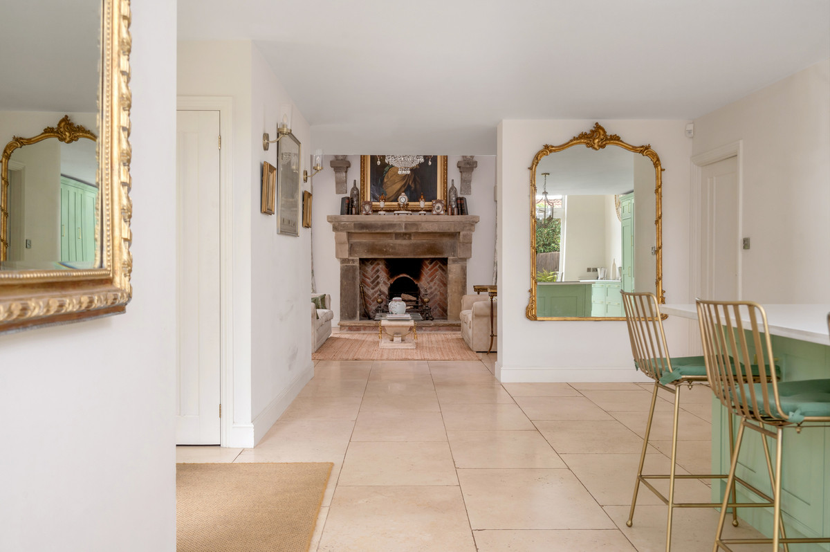 The rest of the ground floor provides a stunning reception room with part vaulted ceiling, showcasing a most impressive feature stone fire surround, created from local reclaimed stone.