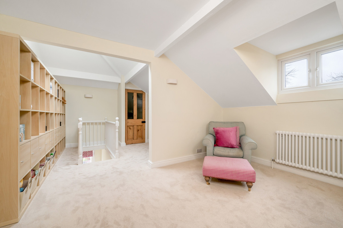 A traditional staircase rises to the first floor, where a spacious landing provides access to two double bedrooms sharing the use of a high quality family bathroom. The second floor provides an impressive open space, created from two attic rooms, now forming a generous bedroom suite with walk in wardrobe and en-suite shower room – this space provides versatility, being ideal for a principal bedroom suite, teenager/ guest suite, or perfect for those with a need to work from home.