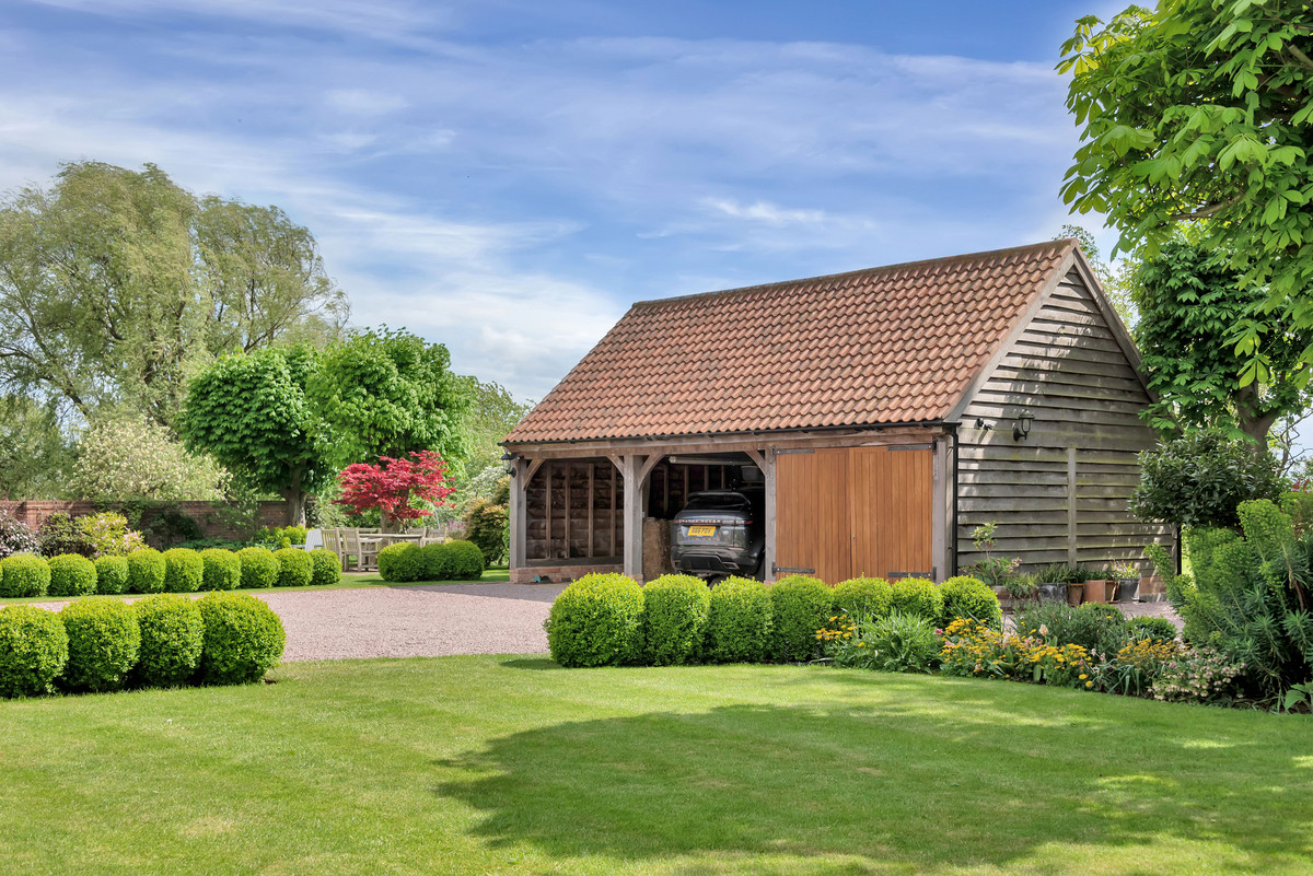 The Stables stands within glorious gardens and grounds approaching 0.75 acres. The gardens have been beautifully created by the current owners with large level lawns and a nice variety of mature trees and heavily stocked borders providing seasonal colour. There are various seating and terrace areas benefitting from sunlight at different times throughout the day, making this property ideal for outdoor entertaining. The property is accessed via an initially part shared driveway, continuing via a private sweeping tree line drive to a gravelled forecourt providing ample off-road parking and access to an attractive oak framed three car port/ garage. In addition to the garage is a further timber garden store. The gardens are without doubt one of the most beautiful features of this property being south westerly facing with views over adjacent countryside and the former village church.