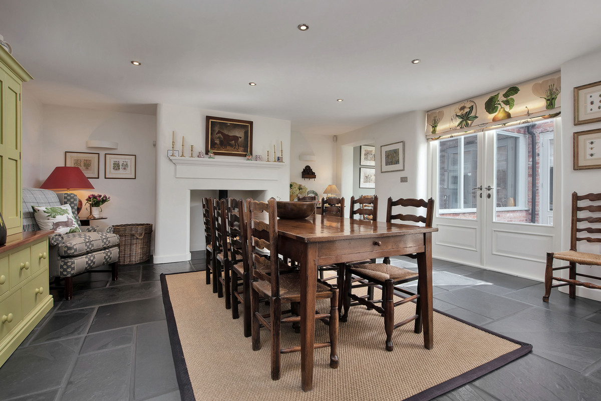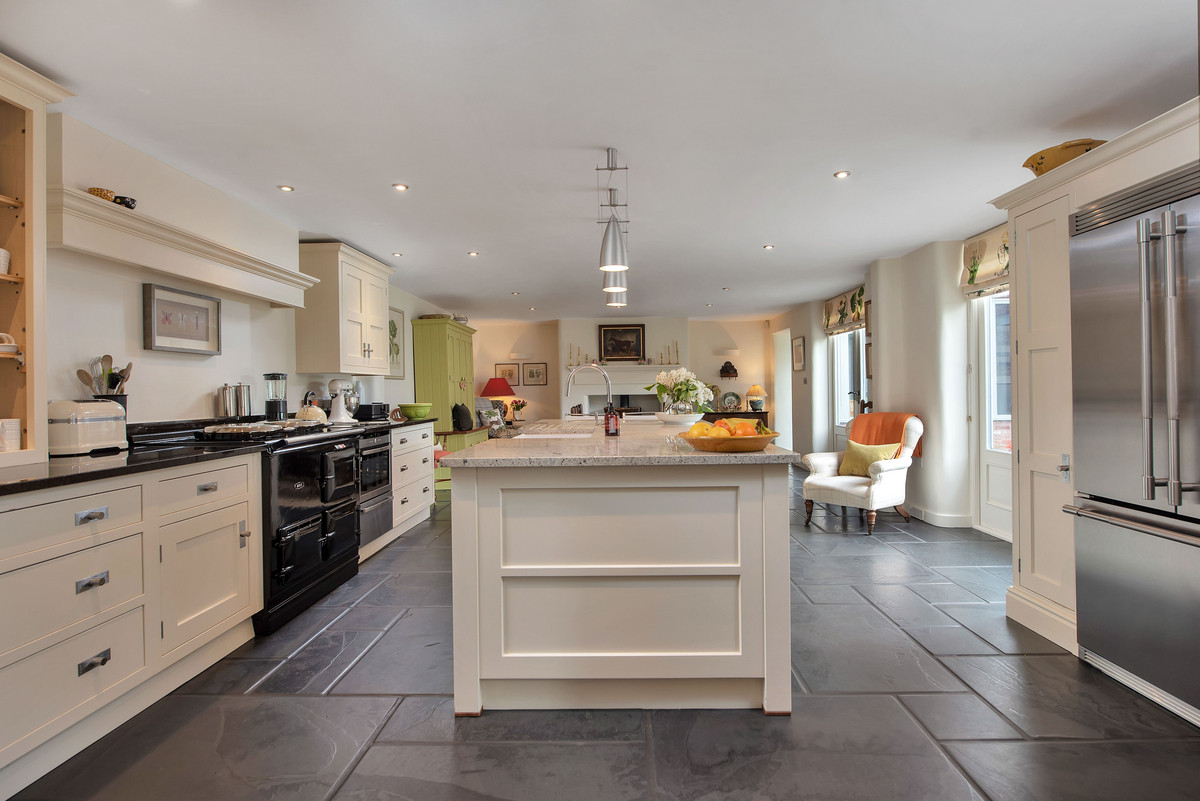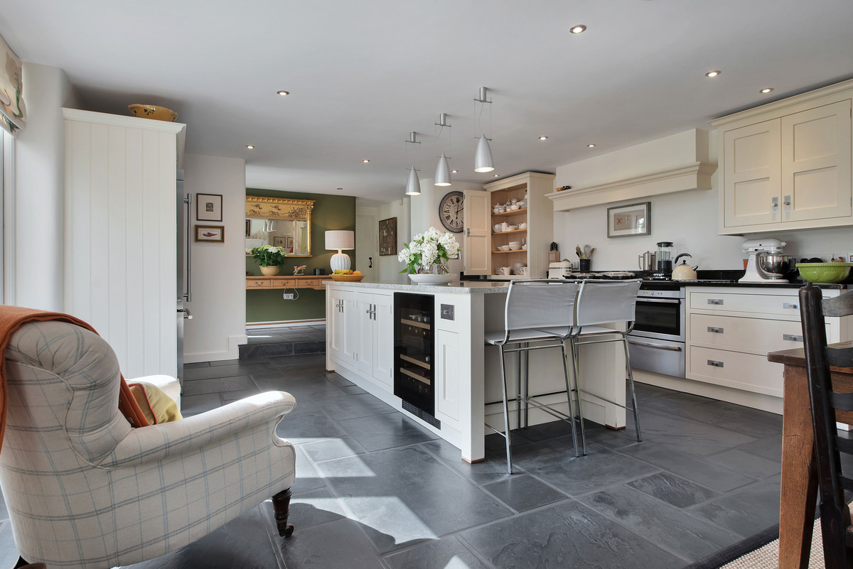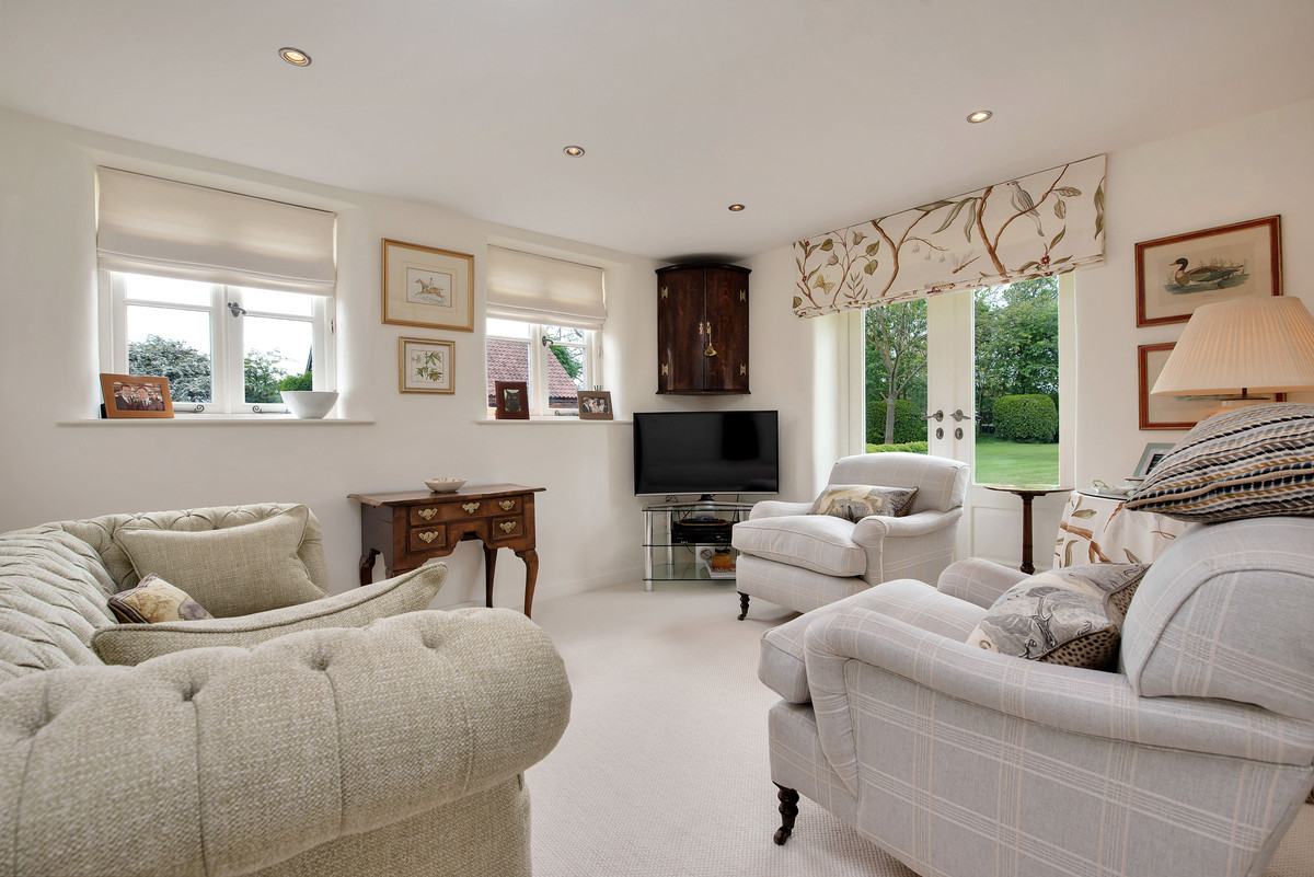 The main accommodation provides both traditional and modern elements which have been sympathetically renovated, providing a stylish and comfortable living environment. As you enter the property an entrance hall provides instant access to a stunning large living kitchen, ultimately creating the heart to the home, with well defined kitchen and dining areas. The kitchen is beautifully crafted and features a range of hand painted wall and base mounted hand painted units by Messrs Martin Moore centred around a generous central island. The kitchen features a range of integrated appliances and electric two oven AGA with AIMS (Aga Intelligent Management System). The dining area showcases a feature fireplace with Jutul log burning stove. Leading off the living kitchen a glazed link provides access to a stunning vaulted sitting room with three sets of French doors providing access to the gardens and further feature fireplace housing a log burning stove. The ground floor accommodation also features a delightful snug, study, utility room and guest cloakroom. There is also a ground floor bedroom with stylish en suite shower room.