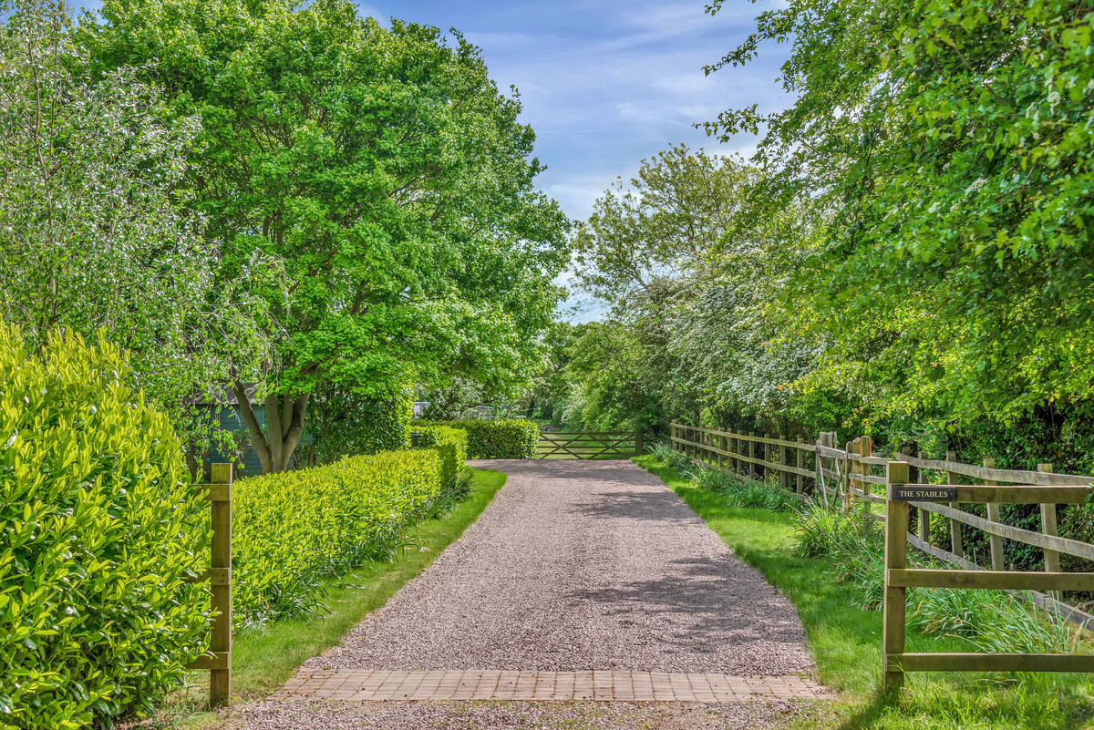 The Stables is a stunning country home and one of two highly individual detached period barn conversions, formally part of the adjacent Grade II listed farmhouse. The property was converted in 2008 to create a versatile and stylish country home extending to approximately 2,700 sq. ft. The property is approached via a sweeping driveway with electric gated access leading to a stunning plot approaching 0.75 of an acre tucked away within quiet, peaceful grounds and south westerly facing gardens. There is ample off road parking for numerous vehicles and an attractive oak framed three car port/garage.