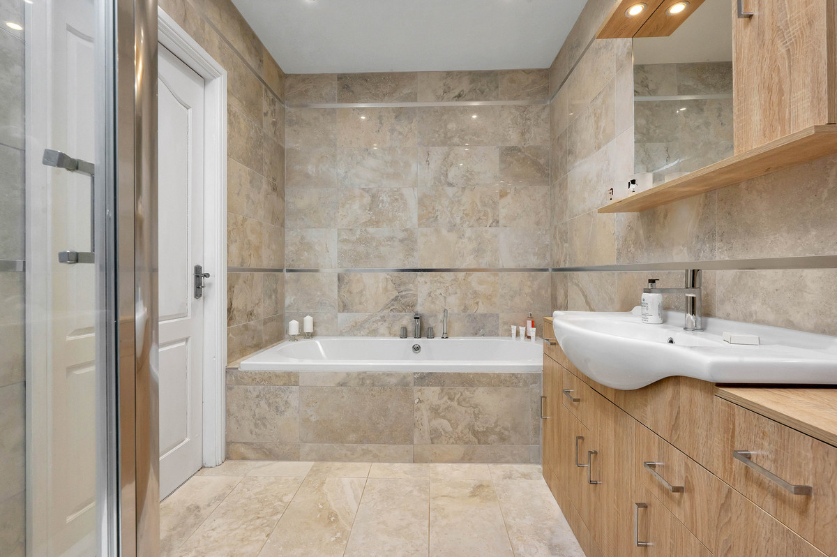Furthermore, the property offers four bedrooms, with the fifth bedroom thoughtfully designed as a study. Both the principal bedroom and bedroom 2 enjoy the luxury of ensuite bathrooms, each equipped with separate shower cubicles. The remaining three generously sized bedrooms share access to a well-appointed shower room. A notable feature is the garden access provided by French doors in the principal bedroom, bedroom 2, and the fifth bedroom, offering a direct connection to the outdoor space.