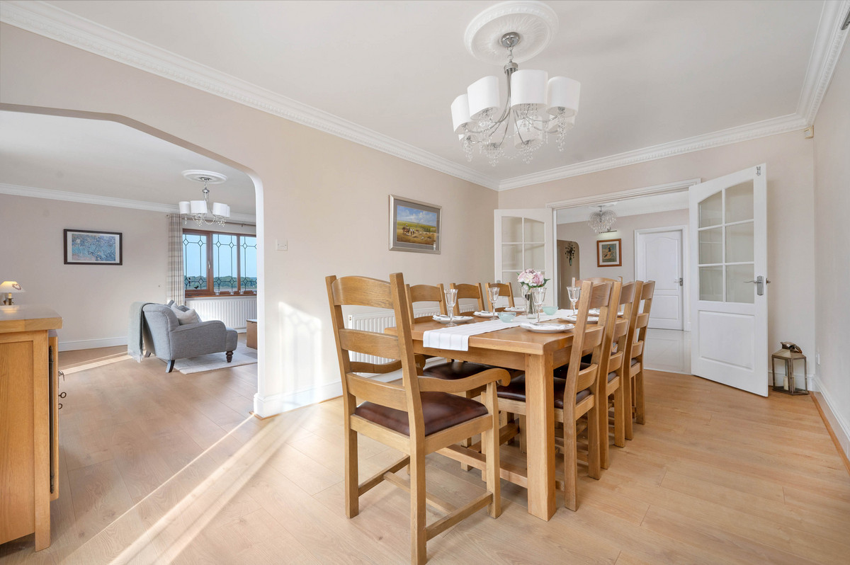 As you arrive, the property welcomes you beneath an expansive storm canopy, leading to an inviting entrance porch that sets the tone for what lies beyond in the spacious reception hallway. This central hub seamlessly connects to both the sitting room and the dining room through twin glazed doors, creating a sense of openness and flow. From this point, you can easily access the dining kitchen, utility room, garden room, and a lengthy corridor that leads to the bedrooms.