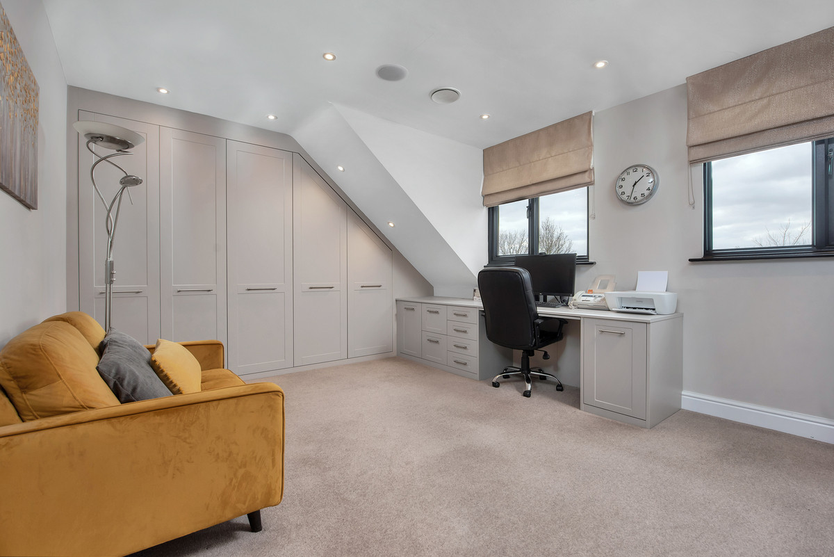 As you enter the property, you are greeted by a spacious reception hallway with staircase winding to the first floor having glazed balustrade. The ground floor is a haven for relaxation and entertaining, boasting a spacious living room with feature fireplace and garden room. The living kitchen is a true masterpiece, featuring state of the art appliances, sleek modern cabinets and a large central island that doubles as a breakfast bar - with bifold door connecting to the garden this is the perfect spot to enjoy a coffee, prepare meals and entertain all year round. A well fitted utility room adds a touch of practicality, whilst the bedroom on this level offers a high degree of versatility having ‘Jack & Jill’ access to a beautiful bathroom.