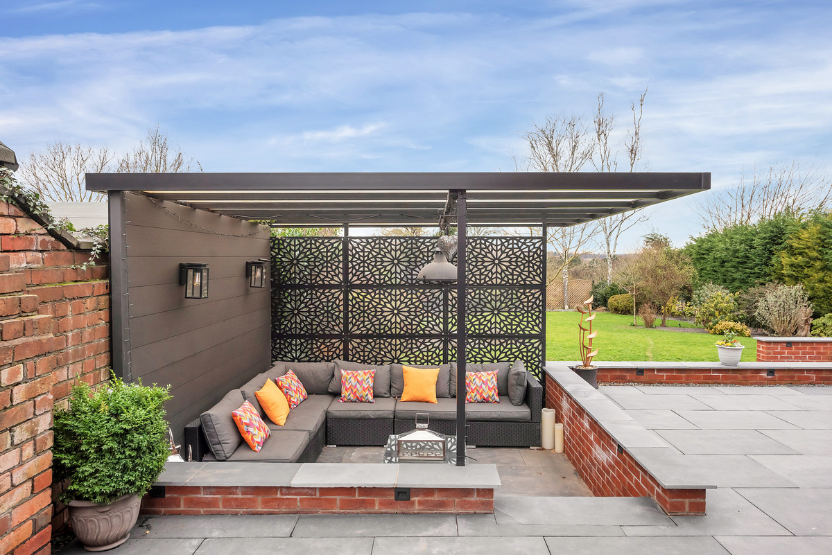 - Large Garden with extensive patio, covered pergola and outside kitchen