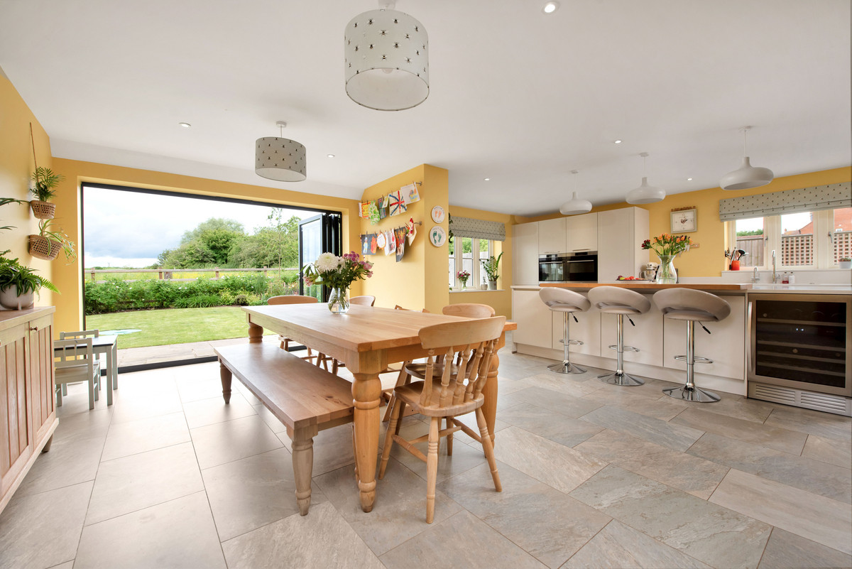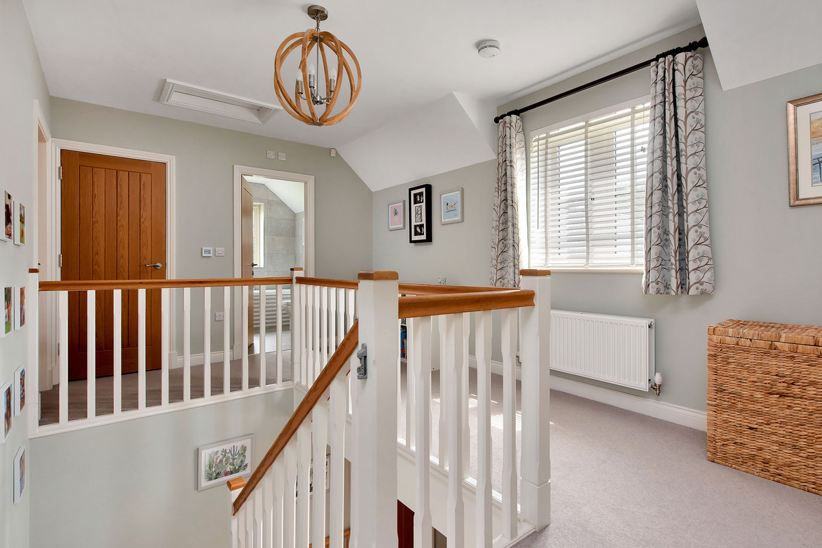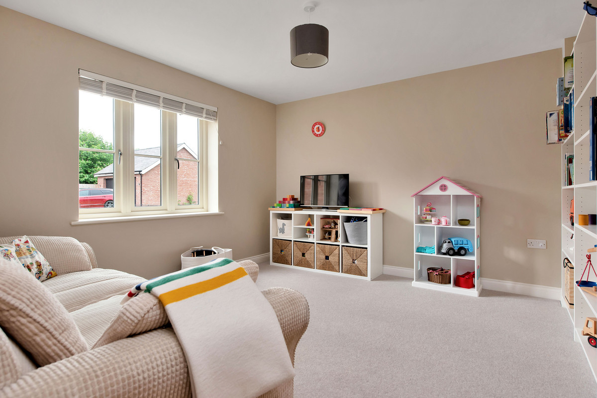 In brief the accommodation comprises; spacious entrance hallway, sitting room with feature fireplace, and family room/study. Without a doubt the heart to the home is the large living kitchen with well defined kitchen and living areas. The kitchen features high grade units, and a wide range of high specification integrated appliances. The living area benefits from bi-fold doors providing direct access to the garden and patio area. The ground floor accommodation is completed with practicalities including a generous utility room and guest cloakroom.