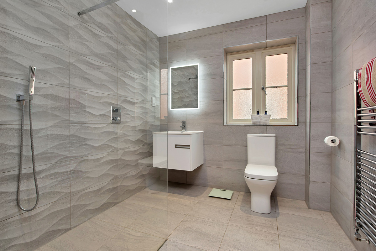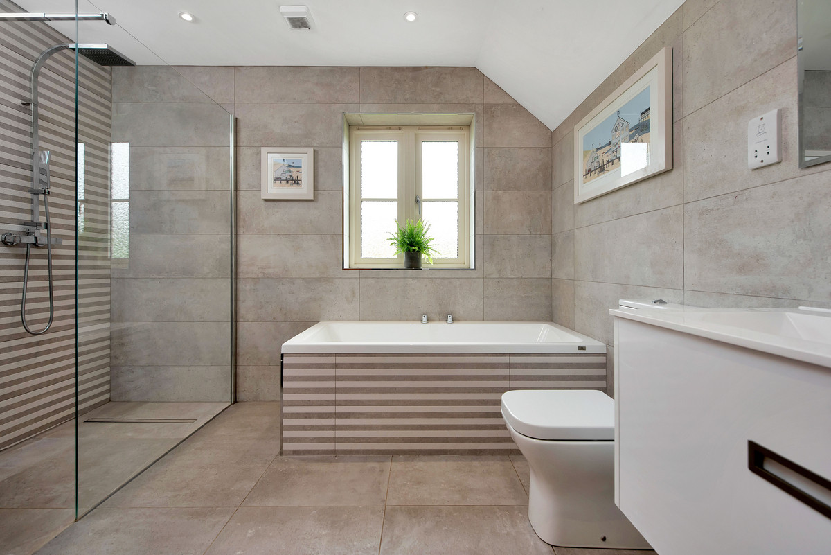 A traditional staircase rises to the first floor to a good sized landing which provides access to the main bedroom with comprehensive built in storage and en suite bathroom. There is a guest bedroom with en suite as well as two further double bedrooms which share the use of a high quality family bathroom. It should be noted that the bathrooms have been stylishly finished with Porcelanosa fixtures and fittings.