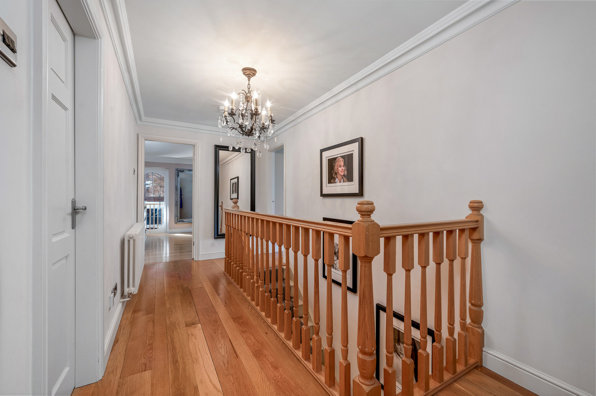 To the first floor is a generous main bedroom with comprehensive built in storage and en-suite shower room. There are three bedrooms which share the use of a high quality family bathroom. The entire first floor feature wooden flooring.