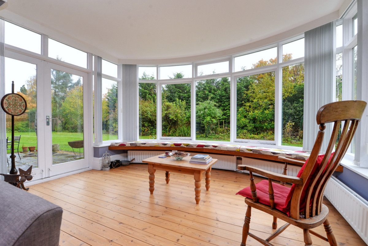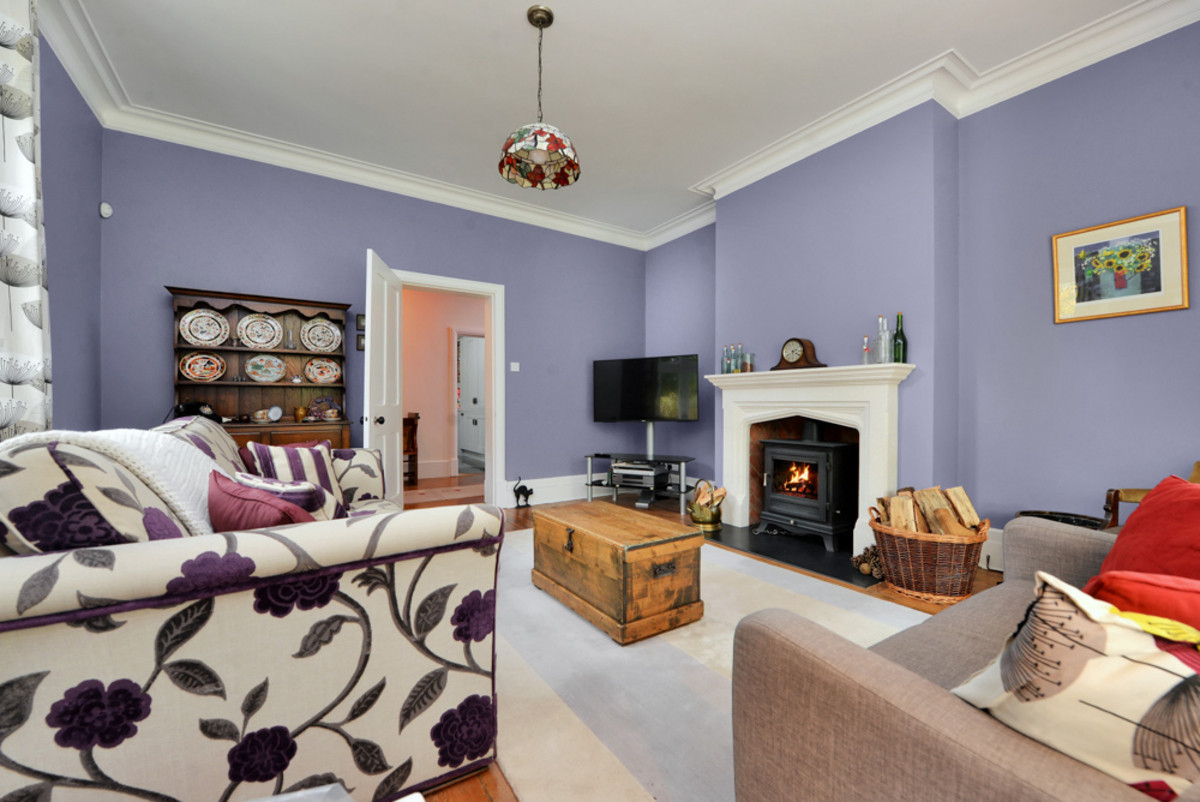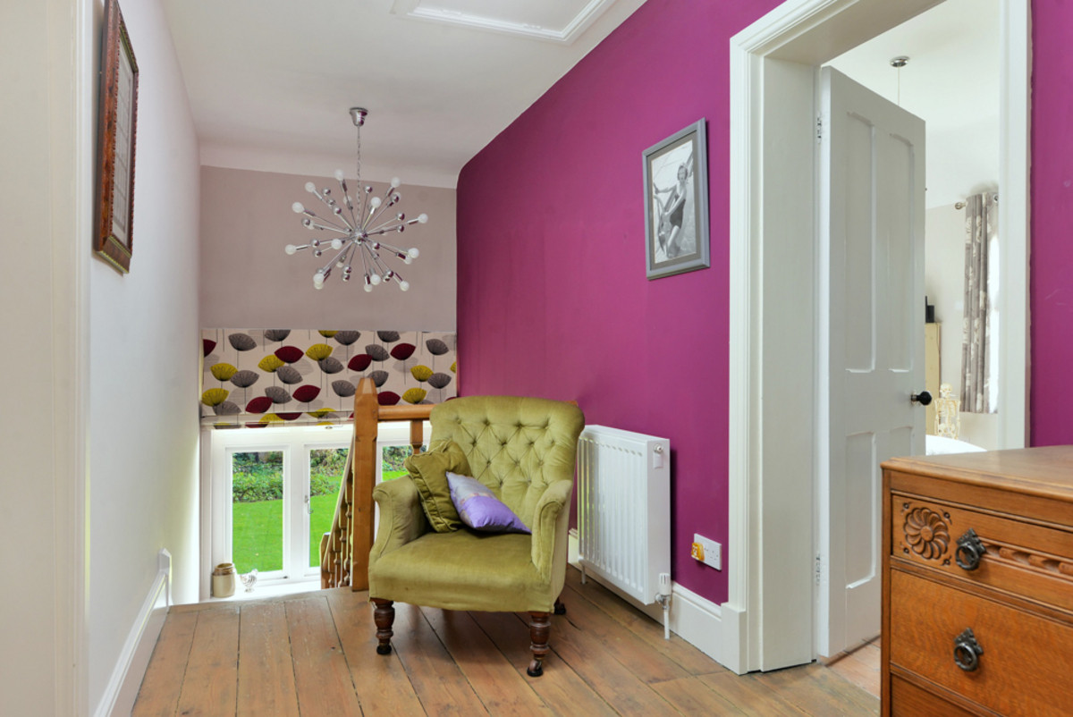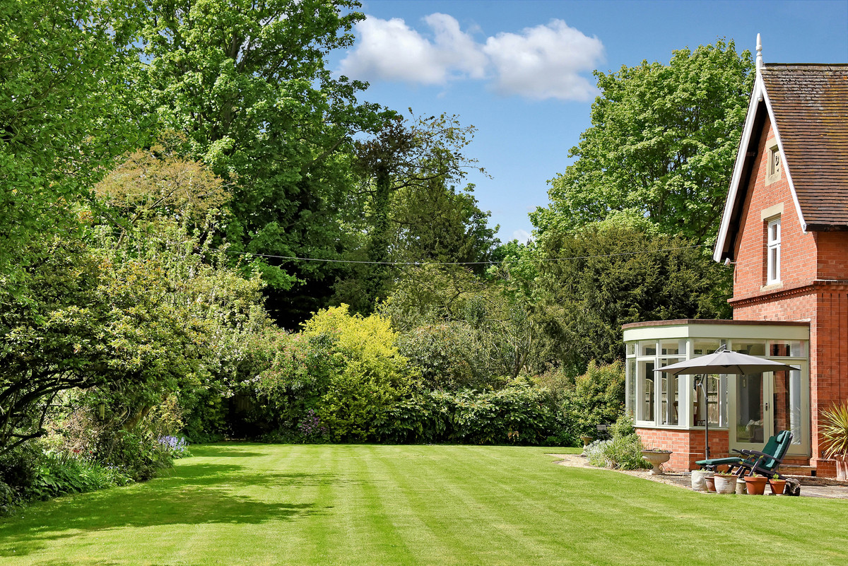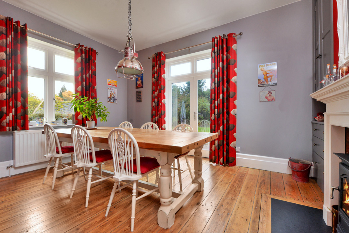 Garden Cottage has a wonderful homely feel. Walking through the gabled front entrance with original flag stone flooring through the Gothic arched door one notes the traditional layout with many of the original features still in place, high ceilings, deep skirtings, and wooden floors throughout. A large hallway provides access to all the principal living accommodation, cellar and 180 degrees turn, oak staircase. The main reception room has many character features, original wooden floorboards and coving, limestone fire surround with a granite hearth housing a ‘Chesney’ multi-fuel burner. The room is further extended by the garden room where natural light floods in through the large bay window and French doors that give direct access to the gardens.