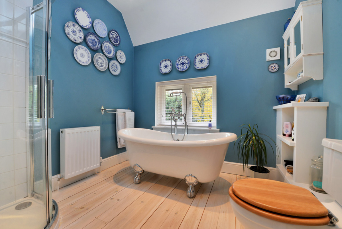 The spacious first floor landing provides access to four extremely generous double bedrooms, main bathroom and storage. All bedrooms are dual aspect immersing each space with natural light and original floorboards. Two bedrooms benefit from en-suite facilities, whilst the main bathroom with painted floorboards has both a shower and free-standing roll topped bath.