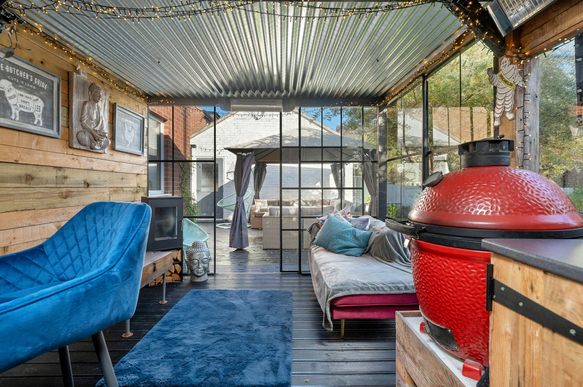 The property benefits from a larger than average plot and the gardens are a particular feature of the property. The rear garden has been significantly landscaped to include decked terraces, shaped lawns, planted raised beds, a corner seating area and the garden room. The superb garden room is the perfect space for entertaining, with glazed sliding doors onto the gardens, decked flooring, timber clad walls and a fixed bar table.