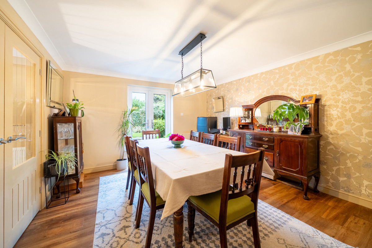 Set in a charming and peaceful position, Churchside House has undergone tasteful enhancements, most notably the transformation of the original double garage into a stunning, open-plan living, dining, and kitchen space. This heart of the home enjoys natural light from three aspects, including a wall of south-facing bifold doors that open seamlessly onto the garden – an ideal setting for family gatherings or entertaining on a summer's evening.