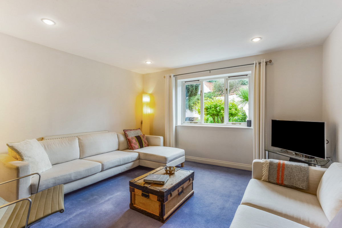 To the right of the entrance hall, a ground-floor cloakroom with a WC is located, while a glazed partition across the hallway offers a view into the charming snug room, which overlooks the garden.