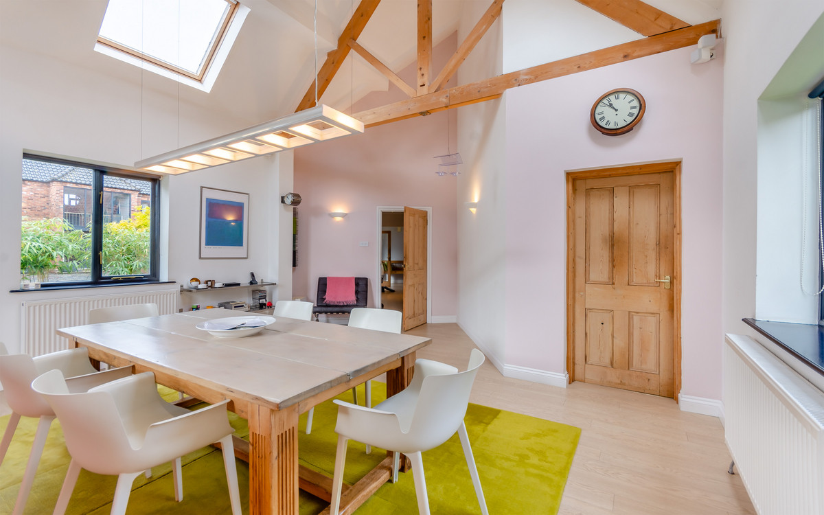 Constructed in 1999, The Corner House stands as a distinctive, four-bedroom detached home, nestled on a peaceful lane within a highly desirable village. Spanning two levels, the property features notable architectural elements, including expansive floor-to-ceiling windows and impressive vaulted ceilings.