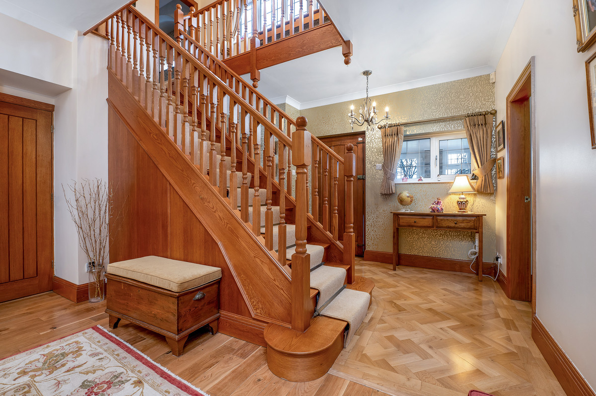 Undoubtedly, one of the key highlights of this home is the incredible established gardens which it enjoys. Extending to approximately 1.2 acres in all and accessed via private electric gates, the grounds are fully enclosed to all sides providing a degree of privacy and space so rarely found so close to a town centre. The attractive frontage enjoys a sweeping turning circle which gives an abundance of freestanding parking, while the side and rear gardens are landscaped with beautiful lawns, stocked borders, mature trees, extensive terraces, a feature natural spring pond which flows down through one of the lawns, summer house/ bar, a hardwood greenhouse with adjoining vegetable garden and a former tennis court. 2280sq.ft of outbuildings comprising of a detached garage with storeroom and WC, a further gardeners/ guests WC and two substantial barns/ garages with alarms and CCTV offer fantastic storage or parking solutions.