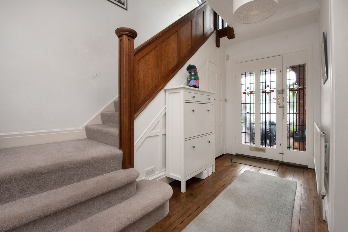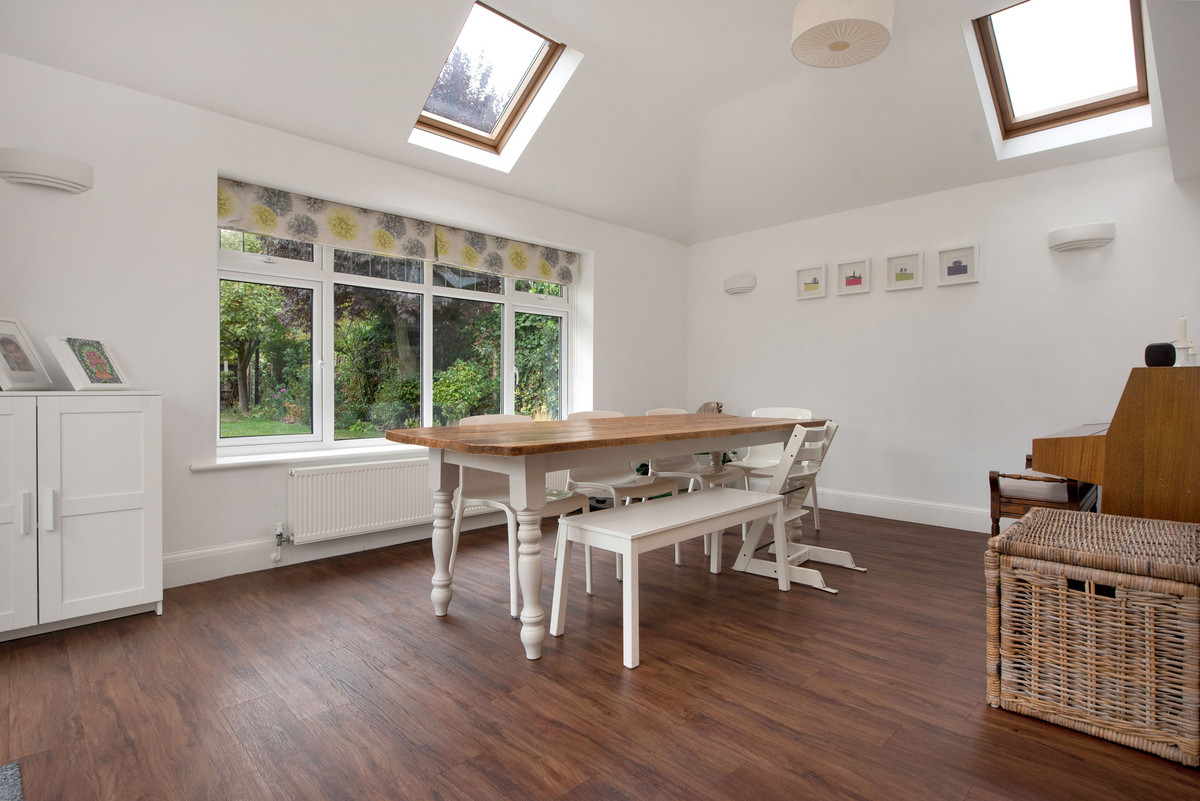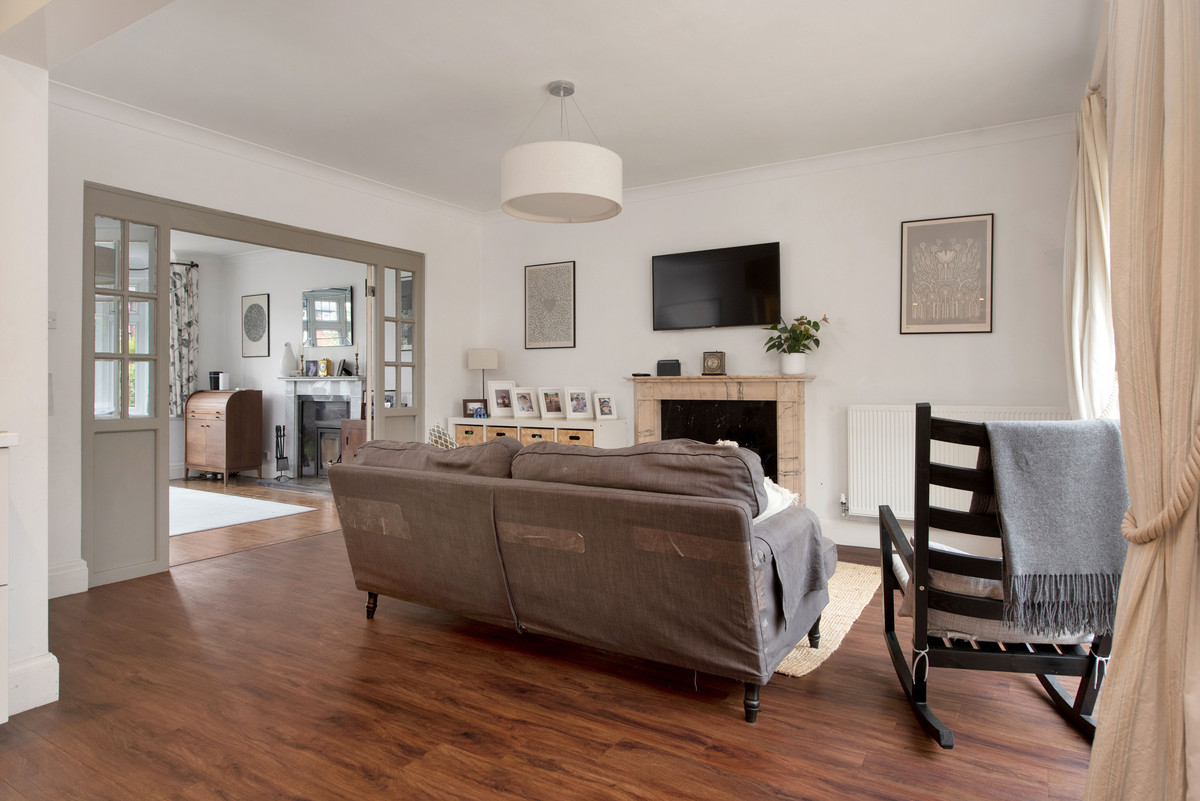 The property provides a comfortable and inviting living environment ideal from family living and showcases a nice variety of original features from the era of construction. Well placed accommodation is arranged over two levels. To the front of the property a spacious reception hallway provides access to an elegant sitting room with feature fireplace housing a log burner. To the rear is a stunning living kitchen with well-defined family, kitchen and dining areas, with two sets of French doors providing access to the gardens. The ground floor accommodation is completed with practicalities including a utility room and guest cloakroom. A traditional staircase rises to the first floor where a light and spacious landing provides access to four bedrooms and a high quality family bathroom. The main benefit has the benefit of an en-suite shower room.