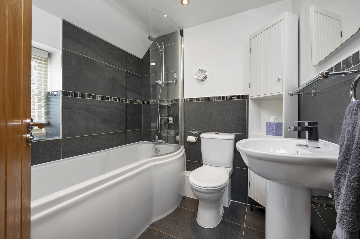 On the first floor, four well-proportioned bedrooms, each with its own en-suite, await. Two of the bedrooms boast the luxury of having baths. The principal bedroom features fitted wardrobes, while bedrooms 2 and 3 enjoy a rear aspect with scenic views. Additionally, a particularly spacious walk-in airing cupboard provides easily accessible storage, also housing the gas boiler and hot water cylinder.
