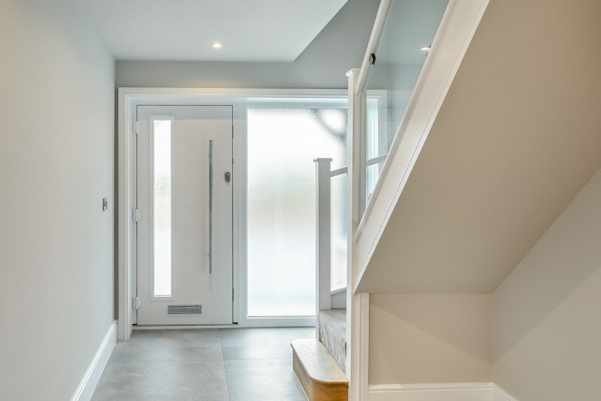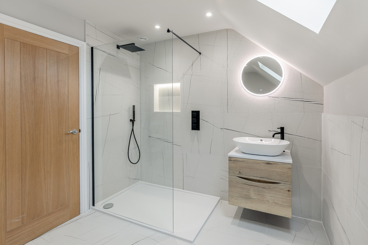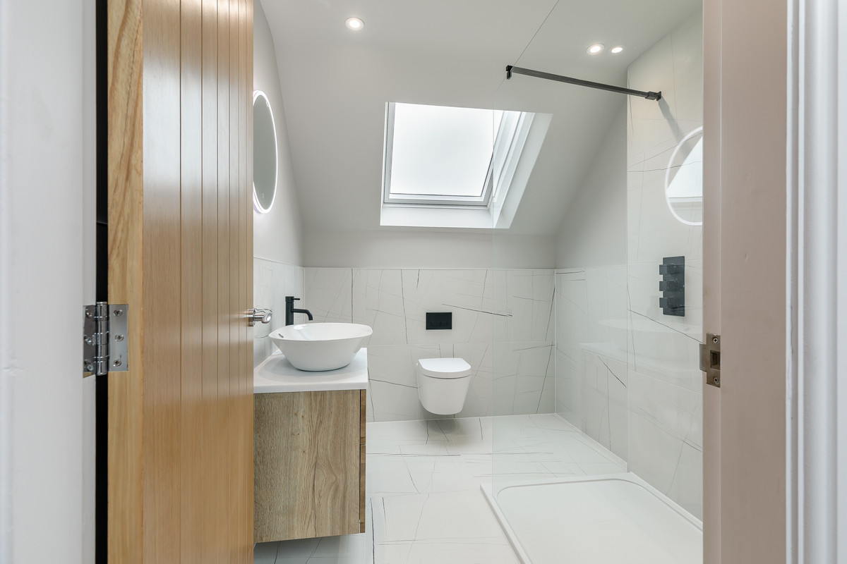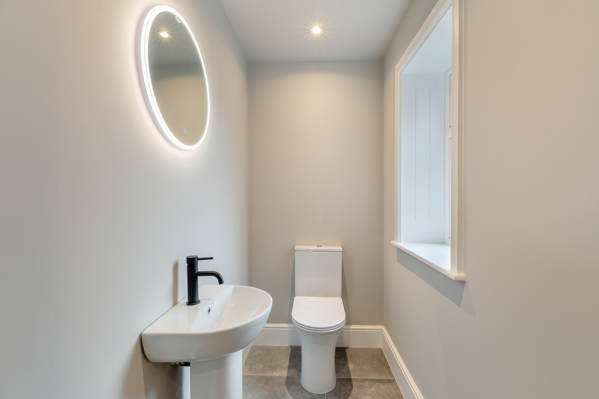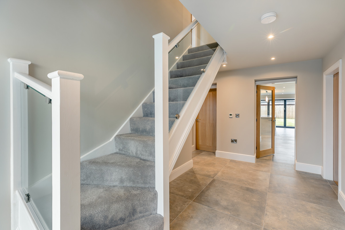 A contemporary timber and glass staircase rises to the first floor. There is a luxurious main bedroom with high quality en suite shower room. There are three further double bedrooms sharing the use of a high quality family bathroom with feature freestanding bath. Both bathrooms within the property are extremely stylishly appointed with contemporary flair.