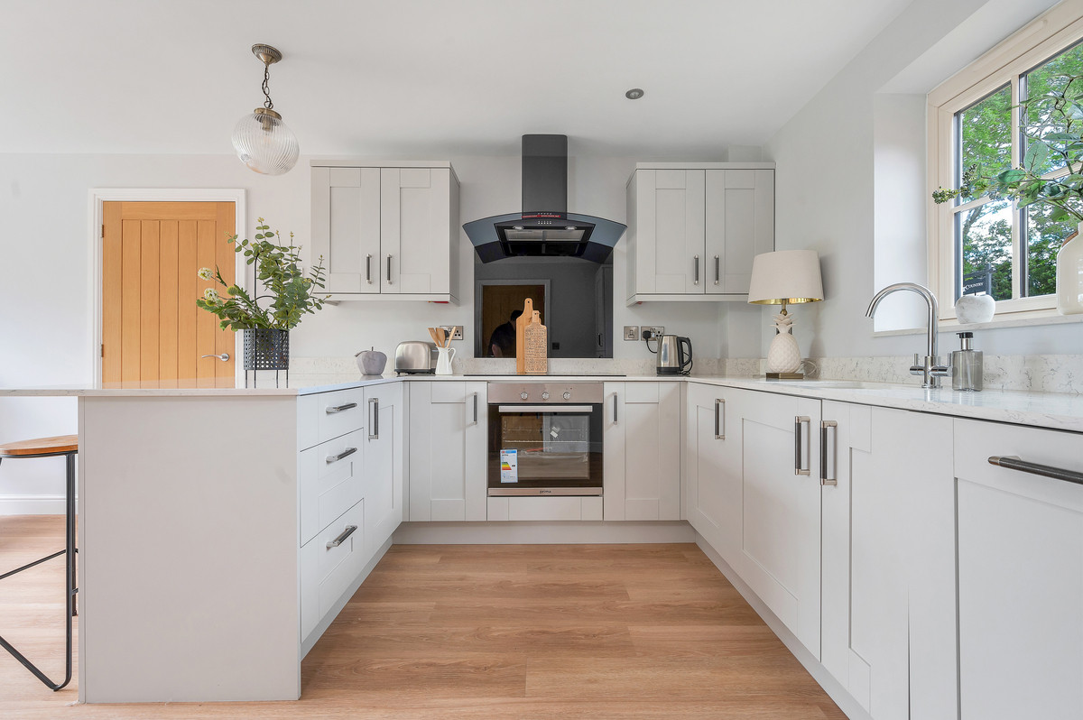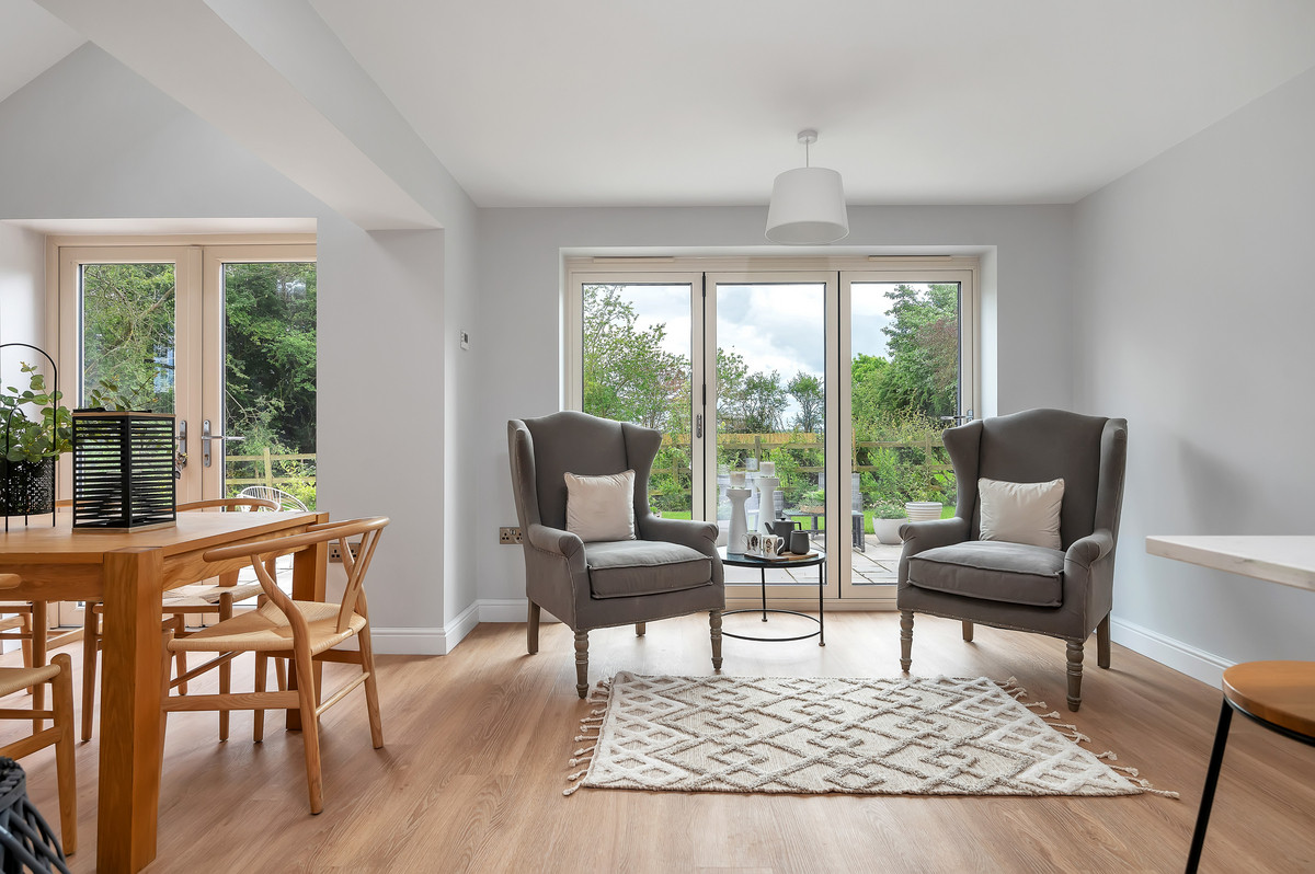 To the ground floor a delightful entrance hallway provides an immediate indication as to the calibre of this home. A spacious hallway with study area to the rear provides access to a generous sitting room with bifold doors providing access to the rear gardens. Without doubt the heart to the home is the impressive living kitchen with well defined kitchen, dining and sitting areas. The kitchen showcases high quality wall and base mounted units beneath quartz worktops, with a range of integrated appliances. The living and dining areas both benefit from bifold and French doors leading straight onto the garden. The ground floor is completed with practicalities including a utility room and guest cloakroom.
