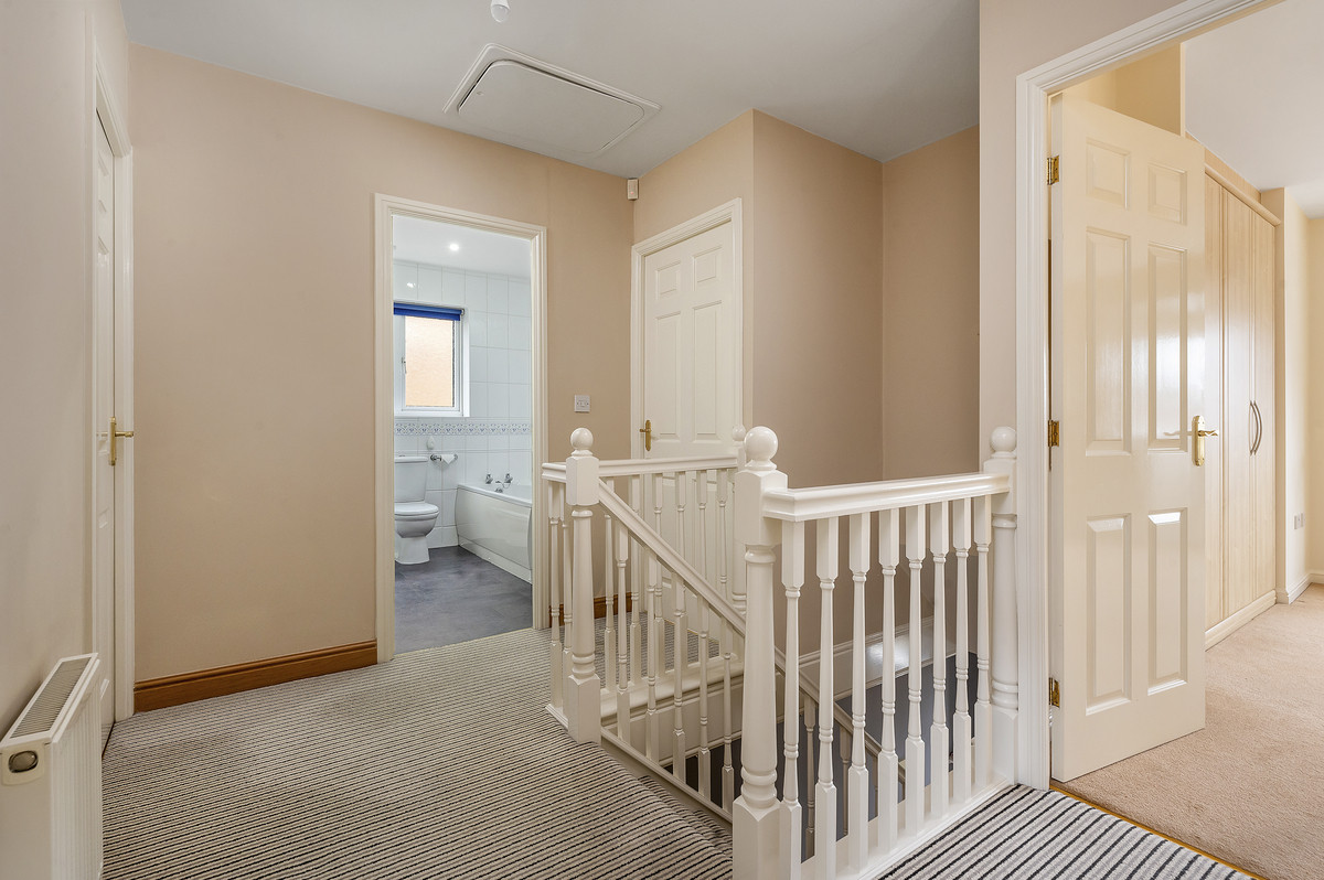 A traditional staircase rises to the first floor where a central landing provides access to four bedrooms. There is a generous main bedroom with comprehensive built in storage and en suite shower room. Two further double bedrooms share the use of a Jack and Jill en suite shower room. The fourth bedroom also has the benefit of comprehensive built in storage and enjoys the use of a high quality family bathroom.