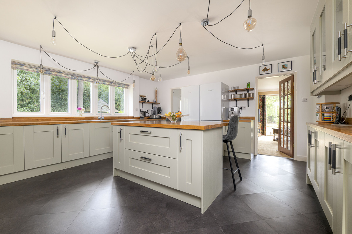 Externally, the property enjoys circa 0.75 of an acre of beautifully established and private gardens to 3 sides. Set back off the main road, the attractive frontage of this home immediately stands out and you instantly appreciate the character and uniqueness of the property. A sweeping in-and-out gravel laid driveway provides ample freestanding parking, with access to the attached double garage giving additional covered parking or useful storage space. The rear and side gardens offer fantastic space for families to enjoy, with substantial lawns, established trees and shrubbery, well-stocked borders, paved pathways, a vegetable garden and a generous terrace directly accessed from the main reception rooms. In addition, there are several useful outbuildings to be found, notably a former detached classroom building which provides an ideal base to use as additional storage or the potential for host of other uses such as a work-from-home space or gym.