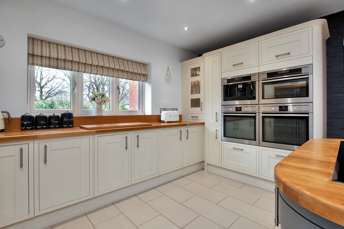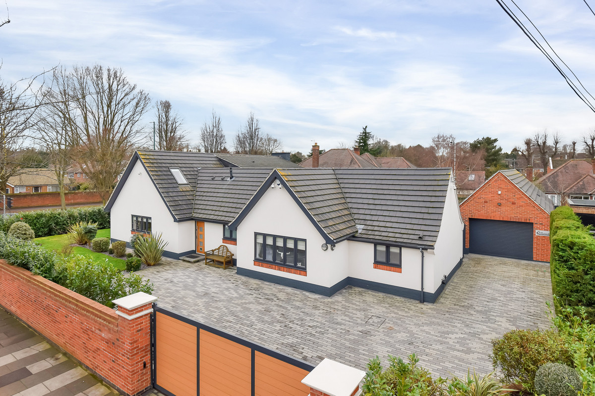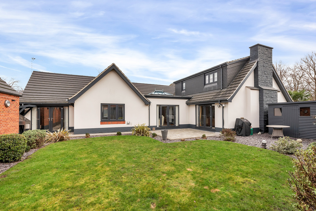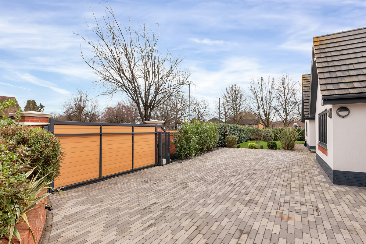 Externally, the property enjoys a spacious and private corner plot which extends to approximately 0.25 of an acre. Walled and fenced to all sides, the garden offers a secure area for those with children or pets to enjoy this space in confidence. The grounds can be accessed via electric pedestrian gate to the front of the property or electric vehicular gates to the side. A substantial block paved driveway with access to 2 separate electric car charging points is capable of accommodating 7/8 vehicles with additional parking in the detached single garage. A charming rear garden with lawned area, stocked borders and generous terrace complete this homes beautiful exterior.