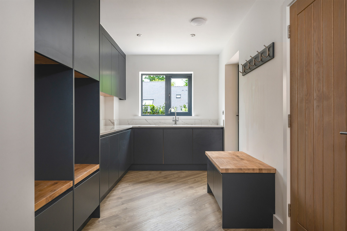 On entering the property a vaulted reception hallway provides an immediate indication as to the calibre of this property. To the front are two reception rooms providing a sitting room with log burner and a home office. The rear of the ground floor is entirely dedicated to a family living area with a stunning living kitchen which opens into an adjacent family room with log burner, both of these spaces benefitting from bi folding doors providing instant access and enjoyment of the gardens. The kitchen is beautifully finished with bespoke wall and base mounted units arranged via a large central island unit, incorporating a full range of high specification integrated appliances. The kitchen also has the benefit of a walk in pantry. The ground floor accommodation is completed with practicalities including a large utility room with access door into the garage and a guest cloakroom.
