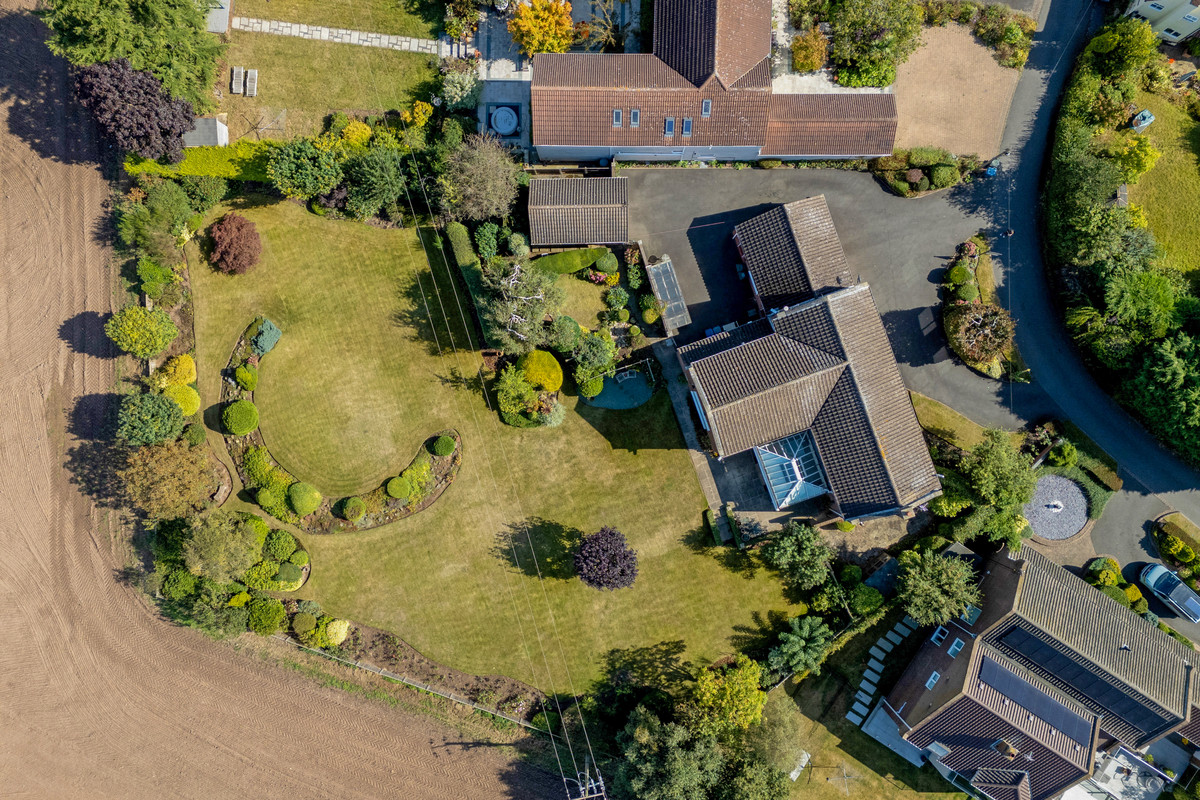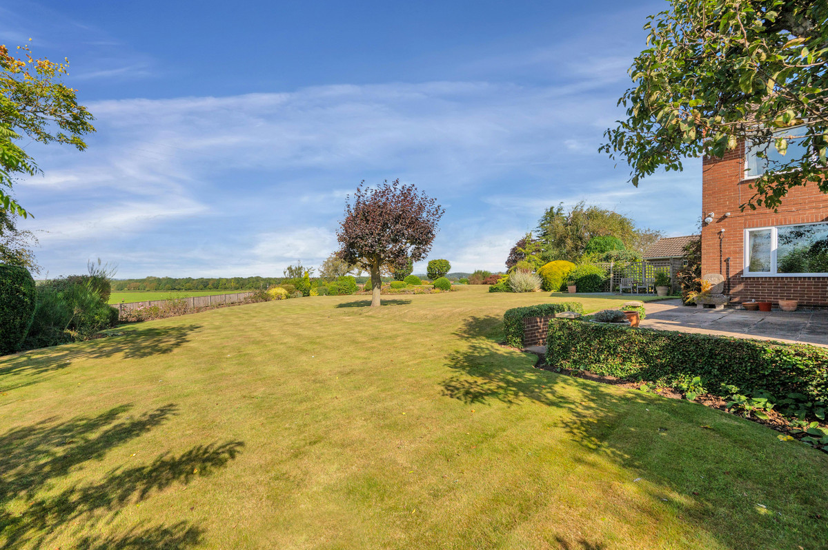 The property sits within a stunning plot, featuring good sized rear gardens that sit adjacent to open countryside. The gardens are beautifully maintained with large shaped lawns and a variety of mature trees and specimen shrubs providing seasonal colour. There are meandering pathways, a large terrace area, and the gardens offer a good degree of privacy. Beyond the gardens lies open countryside, which provides both the house and garden with far reaching views.