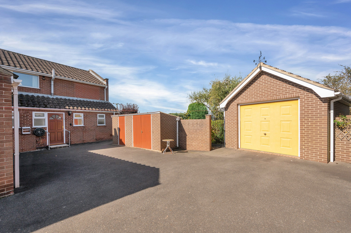 To the front of the property is an in-and-out driveway and an attached double garage with electric garage door. The driveway continues to the rear of the property, where there is a further detached garage with electric garage door, and well as other various brick built outbuildings providing a further utility room and useful storage facilities.