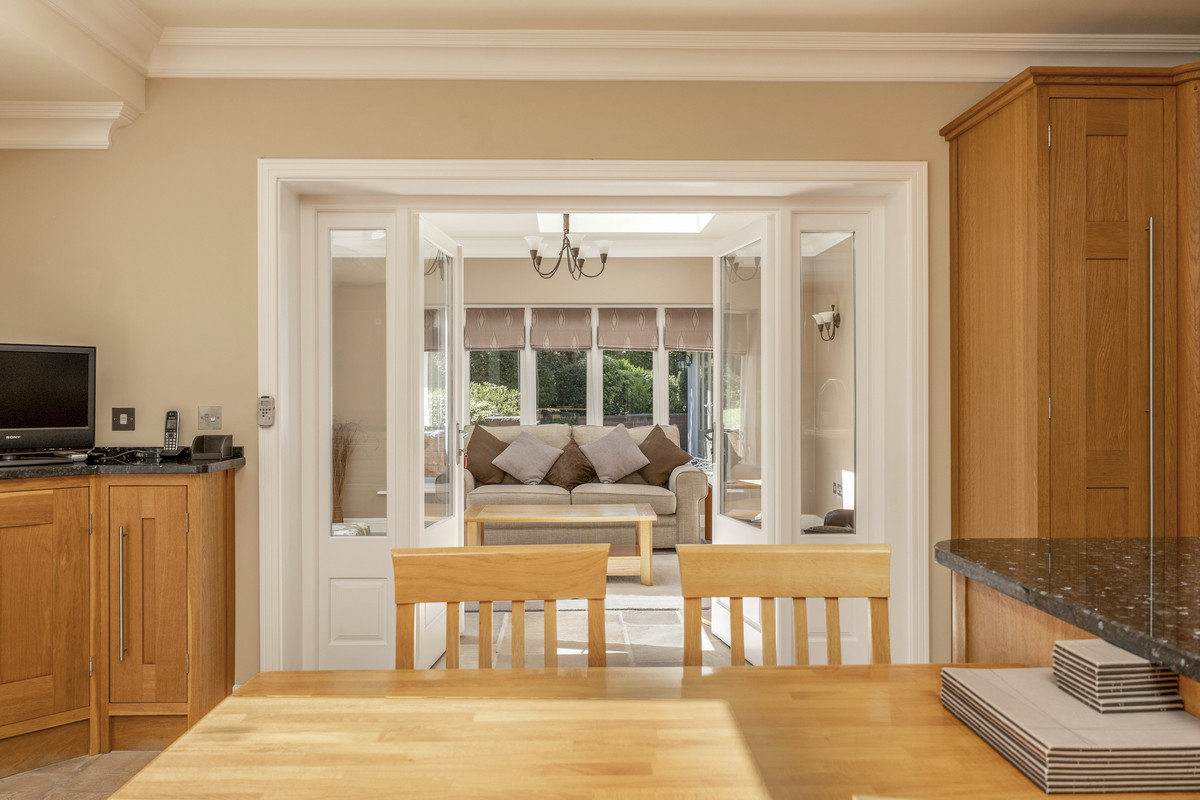 Without doubt the heart to the home is the high quality breakfast kitchen which opens into an adjacent garden room – both areas enjoying delightful views and access to the gardens. The kitchen features high quality oak faced units beneath extensive granite work surfaces, with a range of integrated appliances and Brittania brushed steel cooking range. The kitchen is designed around a large central island and leading off the kitchen is a shelved pantry and practical utility room which benefits from an access door into the garage.