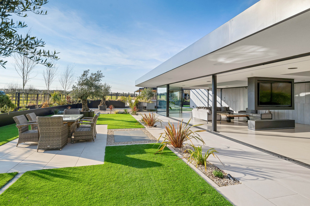 - CONTEMPORARY & PRIVATE LANDSCAPED GROUNDS, IDEAL FOR ENTERTAINING, WITH OUTDOOR KITCHEN AND ENTENSIVE LIGHTING