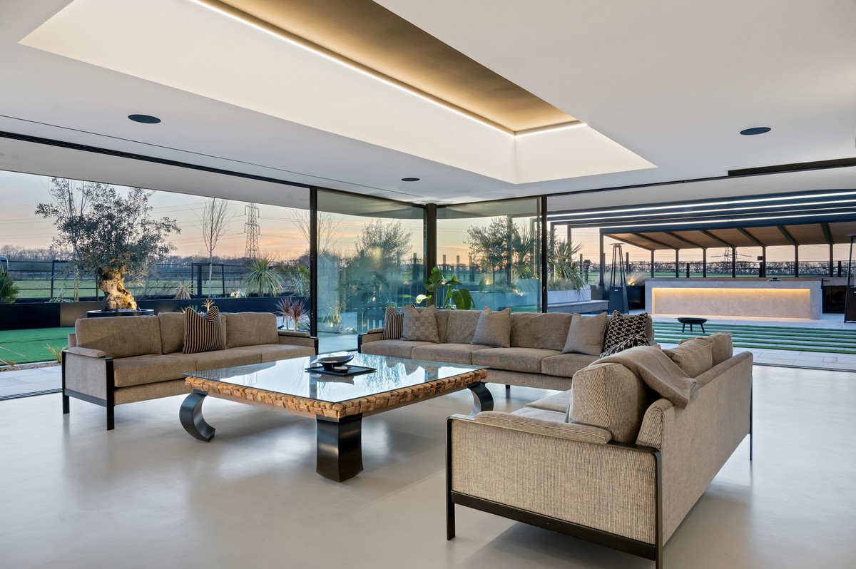 The home's architectural design is both modern and visually striking. Expansive glazing floods the property with natural light offering a seamless link to outdoors. Upon arrival, you’re welcomed by grand 3-meter doors that open to reveal a world of contemporary elegance. Inside, soaring 4.6-meter ceilings create a sense of openness and grandeur, offering an airy and inviting atmosphere. The layout is perfectly suited to entertaining but also ideal for modern family living, balancing style with functionality.