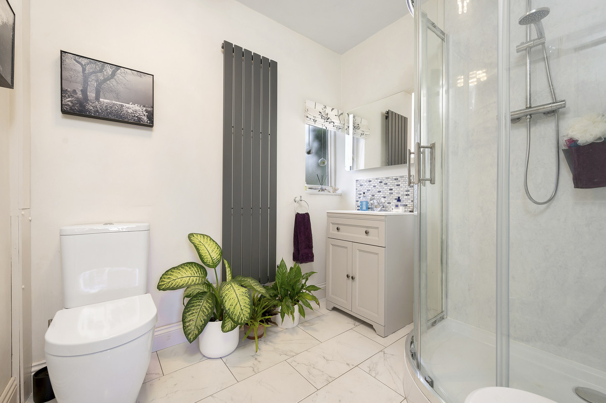 A traditional staircase rises to the first floor where a spacious landing provides access to the main bedroom with en suite shower room. There are three further double bedrooms which share the use of a high quality family bathroom.