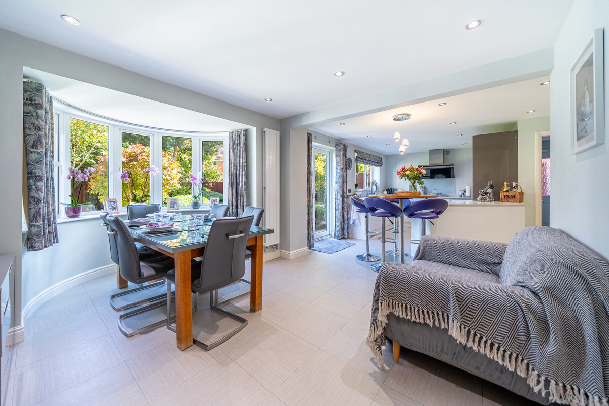 The heart to the home is a stunning contemporary living kitchen which has been recently upgraded to the highest of standards – bespoke wall and base mounted units, a range of ‘high end’ integrated appliances, breakfast bar with high level seating. This superb space features well defined dining and sitting areas, with direct access to a utility room and integral garage.