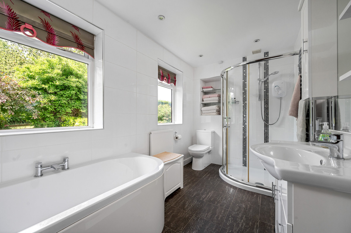 From here, you’ll find five spacious bedrooms, a stylish family bathroom with both a bath and separate shower, plus two additional shower rooms - perfect for busy mornings or hosting guests in comfort.