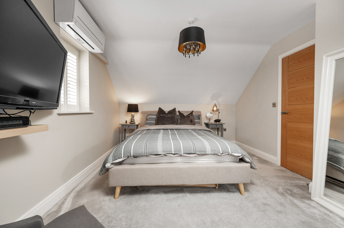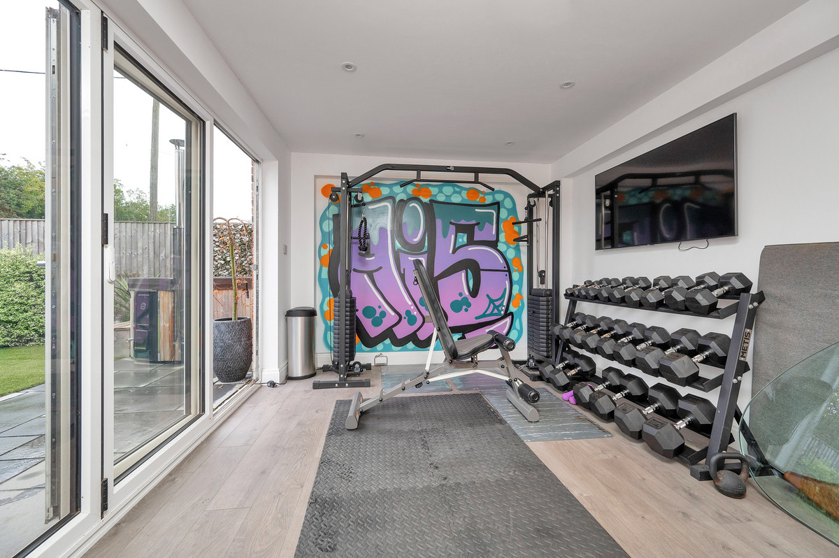The property enjoys landscaped gardens to front and rear. Allocated parking can be found to the front, with a driveway capable of accommodating several further vehicles running alongside of the property. This side driveway also benefits from an electric car charging point as well as giving access to the garage. The rear of the home enjoys an enclosed and extremely private garden, with a substantial paved patio, lawn, stocked borders and outside store. In addition, a recent conversion of the garage has allowed for the creation of a gym room or home office overlooking the garden.