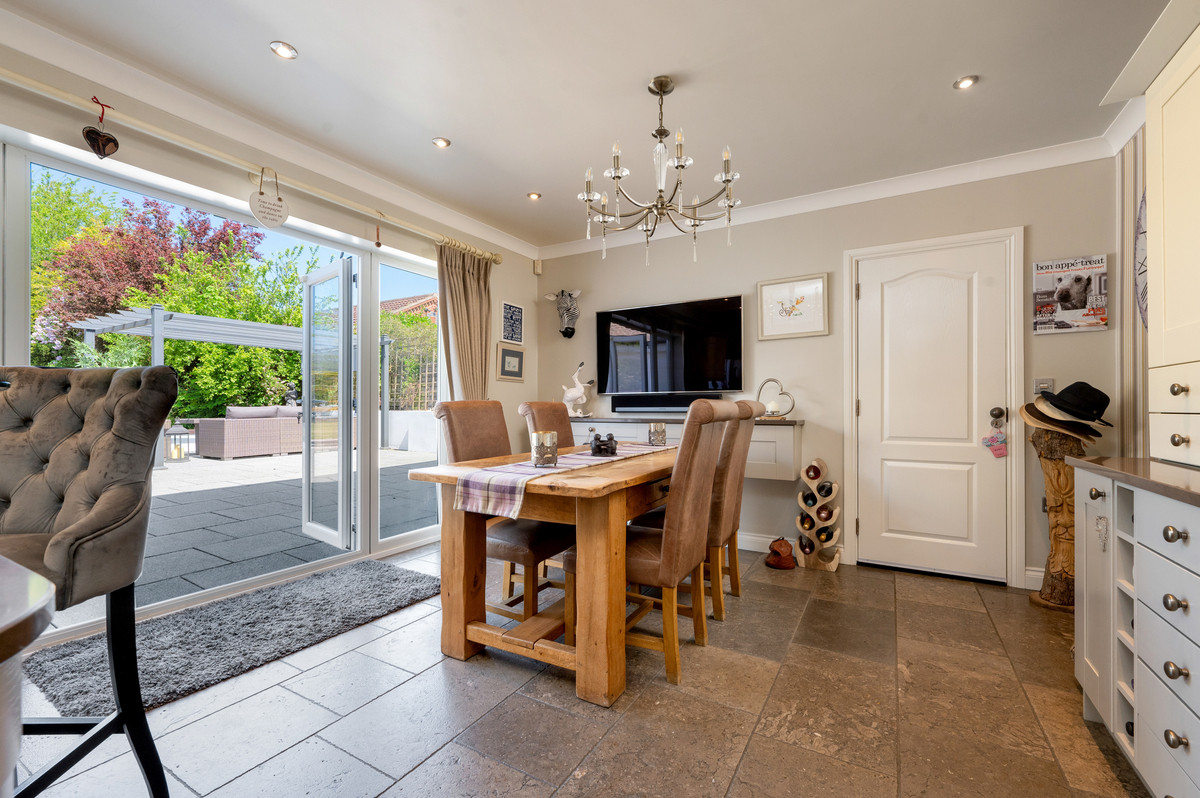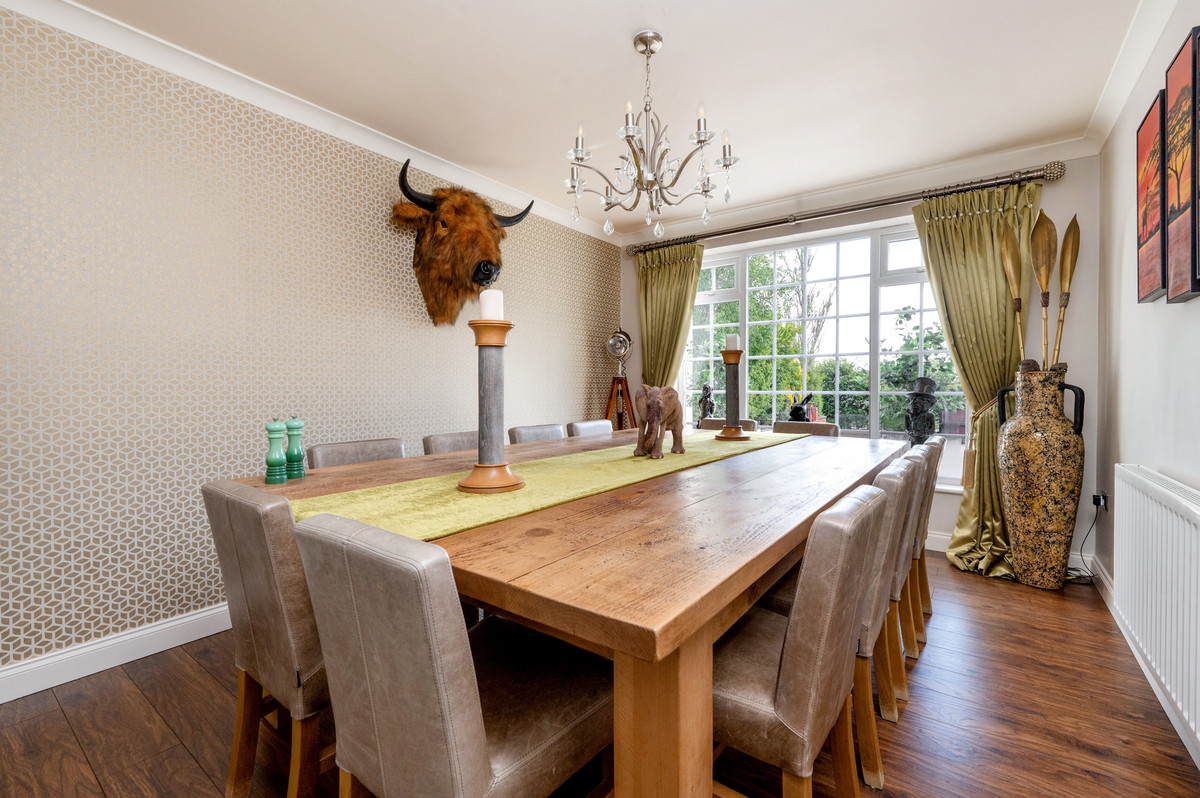 Upon entering the property, you are immediately greeted by a spacious entrance hall, an early indictor of the quality of finish found within this home. Much of the principal ground floor accommodation leads off this hall which, in brief, comprises of: formal lounge with feature electric fire and ample space for the family to enjoy, formal dining room, the open-plan dining kitchen appointed with a host of integrated appliances and plenty of work surfaces for keen cooks, an outstanding games/ cinema room with a fitted bar and French doors leading on to the terrace, a fitted utility room and a ground floor WC/ shower room. To the first floor, there are 4 double bedrooms, two of which enjoy both dressing rooms and en-suite shower rooms, as well a separate family bathroom. To the second floor you’ll find an additional double bedroom with a useful storage room leading off. In addition, there is internal access from the kitchen directly into the integral tandem double garage.