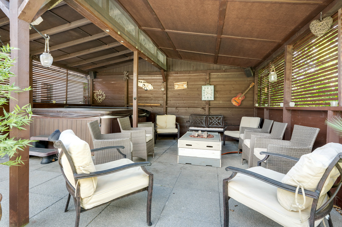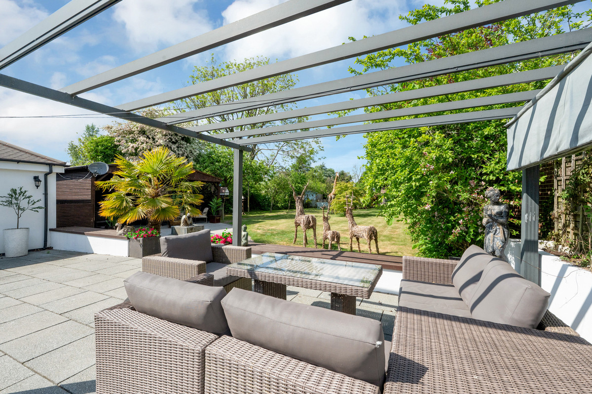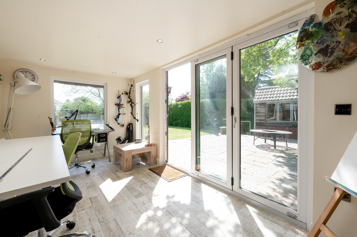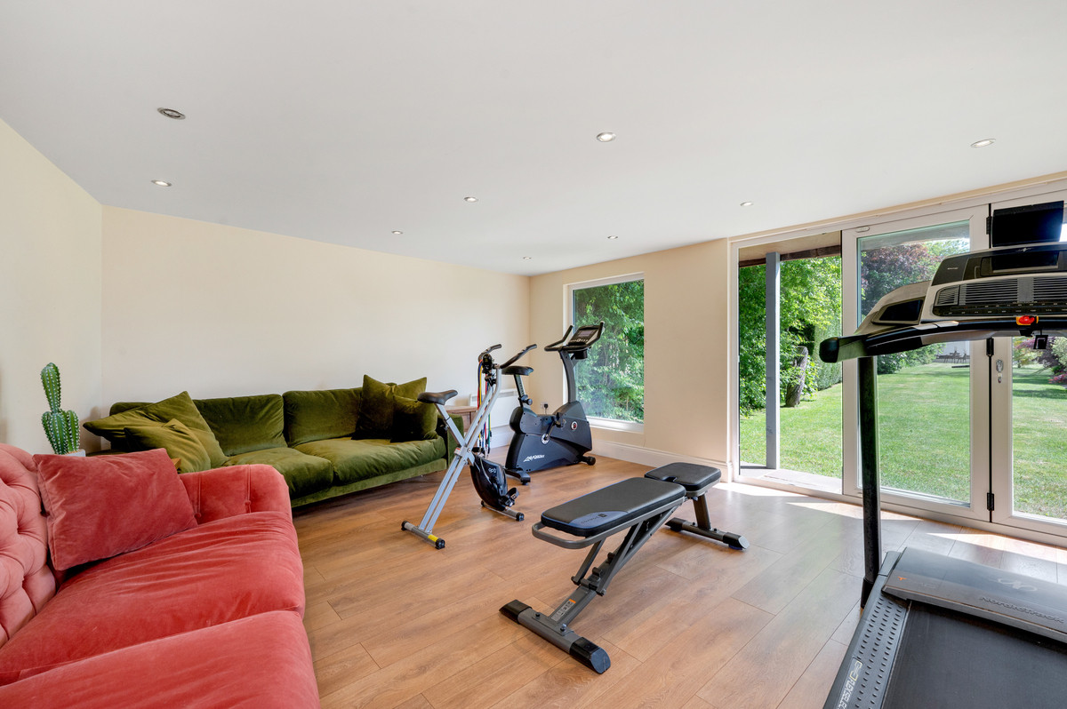Externally, the property enjoys first-class gardens to both front and rear with circa 0.5 of an acre of wonderful space to enjoy. Upon entering the grounds via the electric gated entrance, you are greeted by a substantial paved driveway which is capable of accommodating a number of vehicles comfortably. The rear garden offers the perfect space for families, entertaining and keen gardeners. Exceptionally private and completely enclosed, within this space you’ll find a substantial lawn spanning the entire length of the garden, a vast paved patio which can be accessed from both the games room and kitchen, a covered entertaining space with jacuzzi tub for all-year-around enjoyment, a fantastic purpose built garden block which is split into an office and a gym, several other outbuildings/ stores and lastly the fabulous heated outdoor swimming pool.